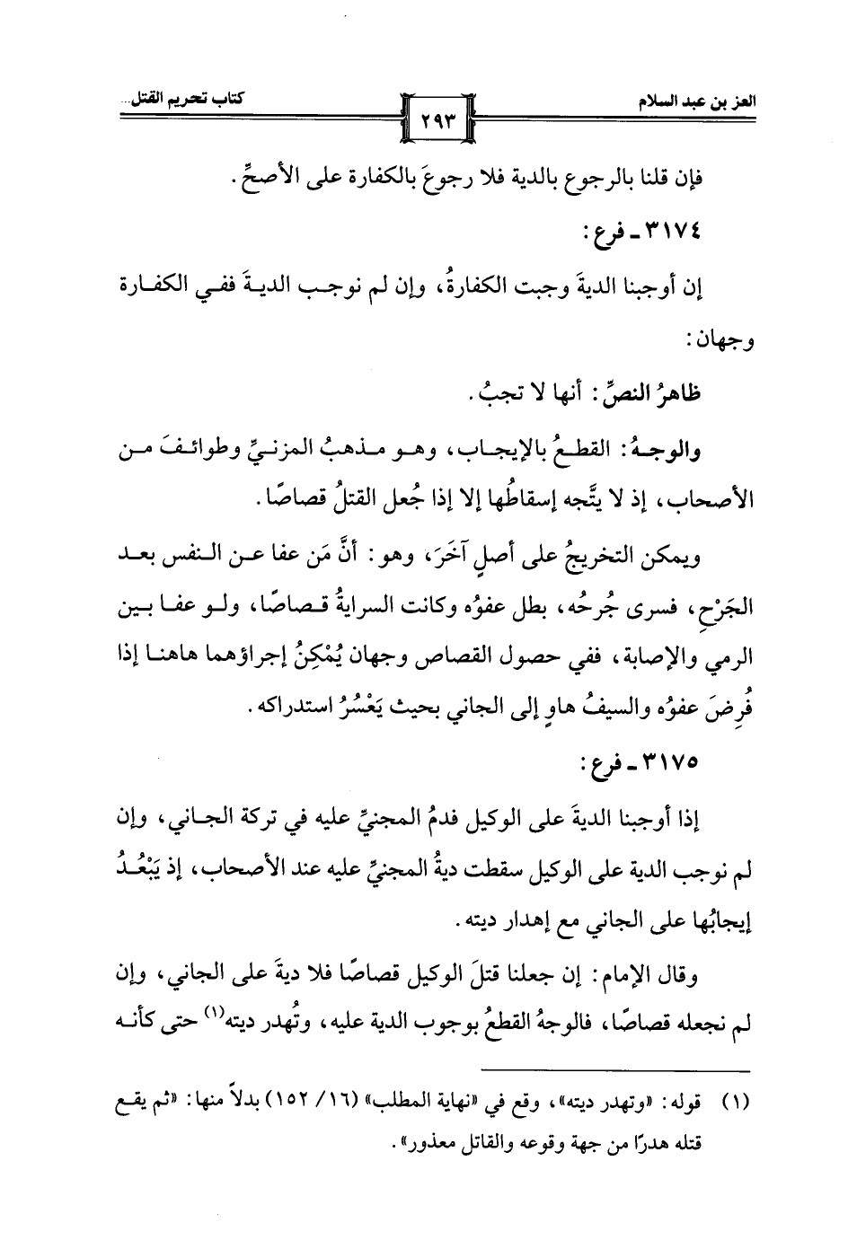 والوجهُ: القطعُ بالإيجاب، وهو مذهبُ المزنيِّ وطوائفَ من الأصحاب، إذ لا يتَّجه إسقاطُها إلا إذا جُعل القتلُ قصاصًا.