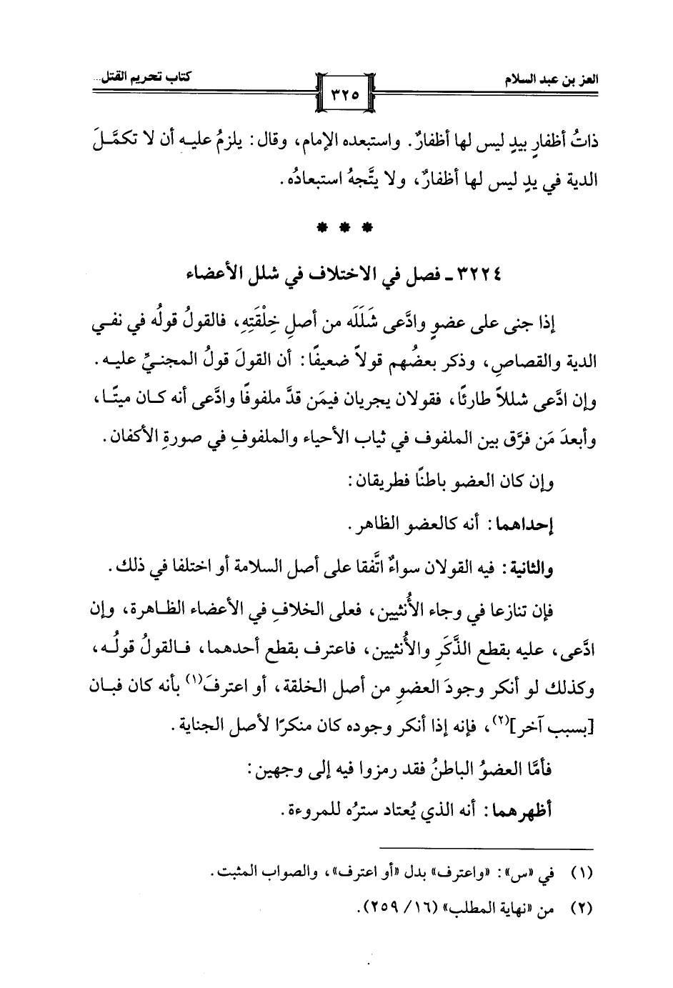 3224 - فصل في الاختلاف في شلل الأعضاء