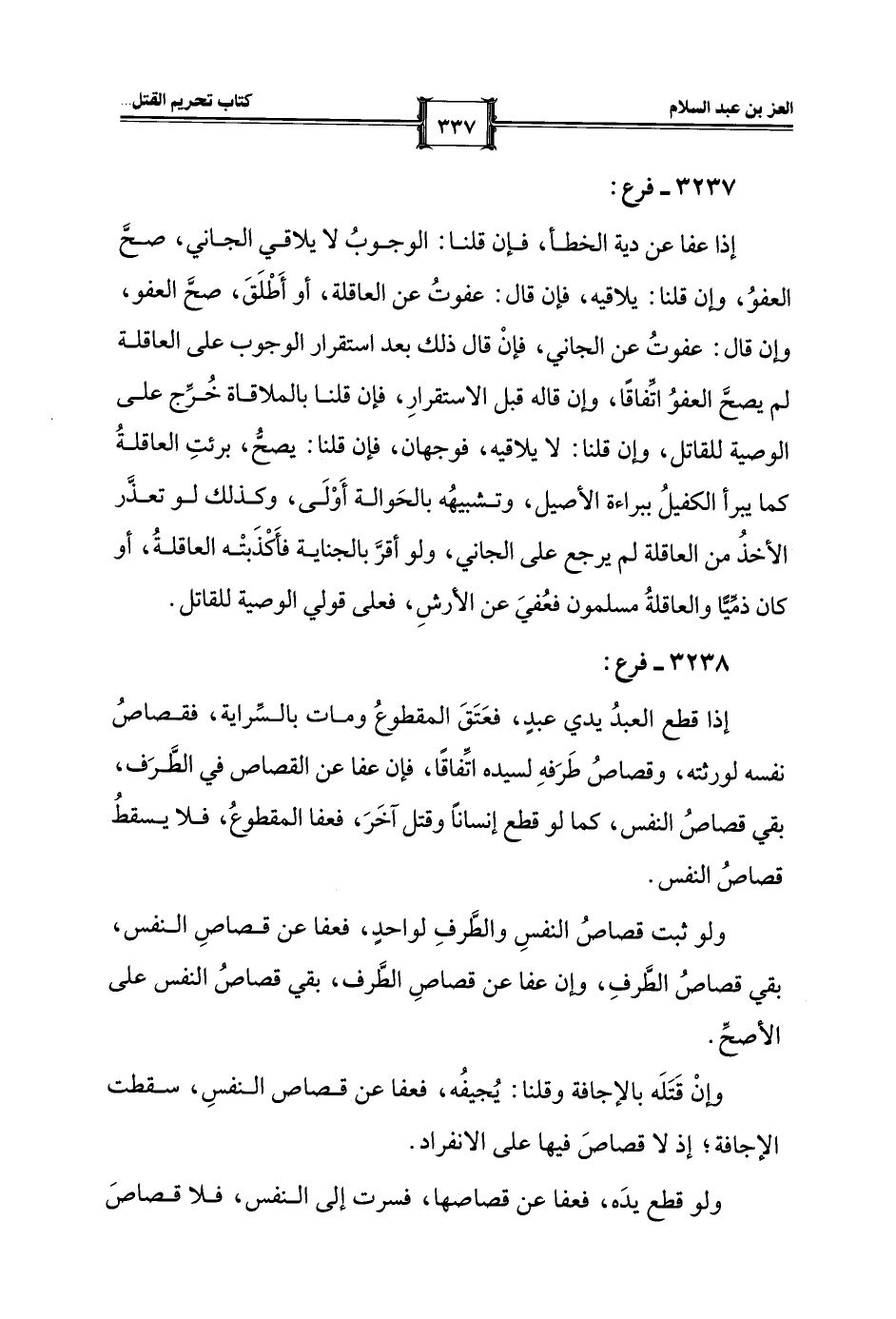 إذا عفا عن دية الخطأ، فإن قلنا: الوجوبُ لا يلاقي الجاني، صحَّ العفوُ، وإن قلنا: يلاقيه، فإن قال: عفوتُ عن العاقلة، أو أَطْلَقَ، صحَّ العفو، وإن قال: عفوتُ عن الجاني، فإنْ قال ذلك بعد استقرار الوجوب على العاقلة لم يصحَّ العفوُ اتِّفاقًا، وإن قاله قبل الاستقرارِ، فإن قلنا بالملاقاة خُرِّج على الوصية للقاتل، وإن قلنا: لا يلاقيه، فوجهان، فإن قلنا: يصحُّ، برئتِ العاقلةُ كما يبرأ الكفيلُ ببراءة الأصيل، وتشبيهُه بالحَوالة أَوْلَى، وكذلك لو تعذَّر الأخذُ من العاقلة لم يرجع على الجاني، ولو أقرَّ بالجناية فأَكْذَبتْه العاقلةُ، أو كان ذمِّيًّا والعاقلةُ مسلمون فعُفيَ عن الأرشِ، فعلى قولي الوصية للقاتل.