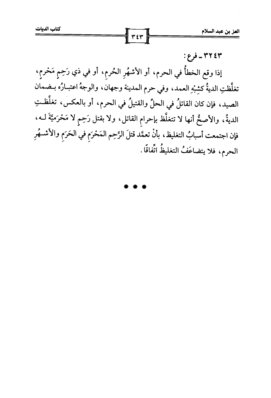 إذا وقع الخطأُ في الحرم، أو الأشهُرِ الحُرمِ، أو في ذي رَحِمٍ مَحْرمٍ، تغلَّظتِ الديةُ كشِبْهِ العمد، وفي حرم المدينة وجهان، والوجهُ اعتبارُه بضمان الصيد، فإن كان القاتلُ في الحلِّ والقتيلُ في الحرم، أو بالعكس، تغلَّظتِ الديةُ، والأصحُّ أنها لا تتغلَّظ بإحرامِ القاتل، ولا بقتل رَحِمٍ لا مَحْرَميَّةَ له، فإن اجتمعت أسبابُ التغليظ، بأنْ تعمَّد قتلَ الرَّحِم المَحْرَمِ في الحَرَمِ والأشهُرِ الحرم، فلا يتضاعَفُ التغليظُ اتِّفاقًا.