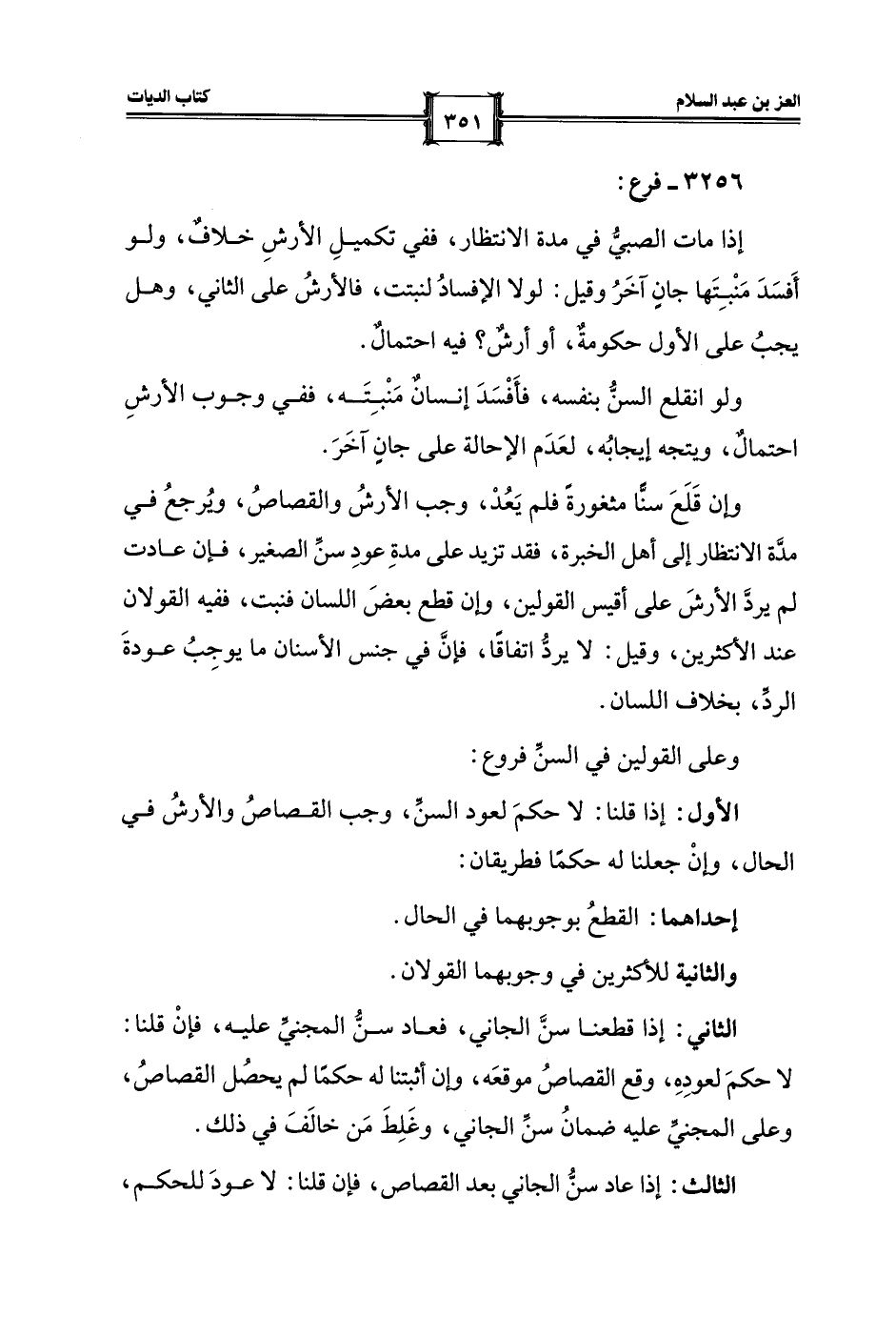 وإن قَلَعَ سنًّا مثغورةً فلم يَعُدْ، وجب الأرشُ والقصاصُ، ويُرجعُ في مدَّة الانتظار إلى أهل الخبرة، فقد تزيد على مدةِ عودِ سنِّ الصغير، فإن عادت لم يردَّ الأرشَ على أقيس القولين، وإن قطع بعضَ اللسان فنبت، ففيه القولان عند الأكثرين، وقيل: لا يردُّ اتفاقًا، فإنَّ في جنس الأسنان ما يوجِبُ عودةَ الرد، بخلاف اللسان.