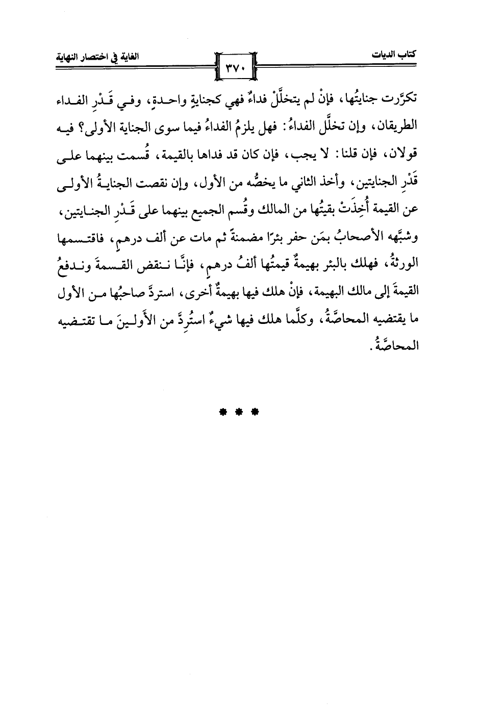 تكرَّرت جنايتُها، فإنْ لم يتخلَّلْ فداءٌ فهي كجنايةٍ واحدةٍ، وفي قَدْرِ الفداء الطريقان، وإن تخلَّل الفداءُ: فهل يلزمُ الفداءُ فيما سوى الجناية الأول؟ فيه قولان، فإن قلنا: لا يجب، فإن كان قد فداها بالقيمة، قُسمت بينهما على قَدْرِ الجنايتين، وأخذ الثاني ما يخصُّه من الأول، وإن نقصت الجنايةُ الأول عن القيمة أُخِذَتْ بقيتُها من المالك وقُسم الجميع بينهما على قَدْرِ الجنايتين، وشبَّهه الأصحابُ بمَن حفر بئرًا مضمنةً ثم مات عن ألف درهمٍ، فاقتسمها الورثةُ، فهلك بالبئر بهيمةٌ قيمتُها ألفُ درهمٍ، فإنَّا ننقض القسمةَ وندفعُ القيمةَ إلى مالك البهيمة، فإنْ هلك فيها بهيمةٌ أخرى، استردَّ صاحبُها من الأول ما يقتضيه المحاصَّةُ، وكلَّما هلك فيها شيءٌ استُرِدَّ من الأَولينَ ما تقتضيه المحاصَّةُ.