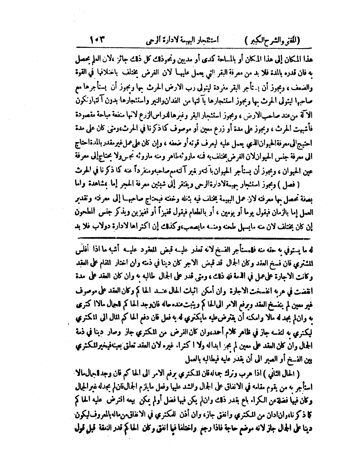 الجمال وإن كان العقد على معين لم يجز إبداله ولا اكتراء غيره لأن العقد تعلق بعينه فيخير المكتري بين الفسخ أو الصبر إلى أن يقدر عليه فيطالبه بالعلم (الحال الثاني) إذا هرب وترك جماله فإن المكتري يرفع الأمر إلى الحاكم فإن وجد للجمال مالا استأجر به من يقوم مقامه في الإنفاق على الجمال والشد عليها وفعل ما يلزم الجمال فان لم يجد له غير الجمال وكان فيها فضلة عن الكراء باع بقدر ذلك وإن لم يكن فيها فضل أو لم يكن بيعه افترض عليه الحاكم كما ذكرنا، وإن أدان من المكتري وأنفق جاز، وإن أذن للمكتري في الأنفاق من ماله بالمعروف ليكون دينا على الجمال جاز لأنه موضع حاجة فإذا رجع واختلفا فيما أنفق وكان الحاكم قدر النفقة قبل قول