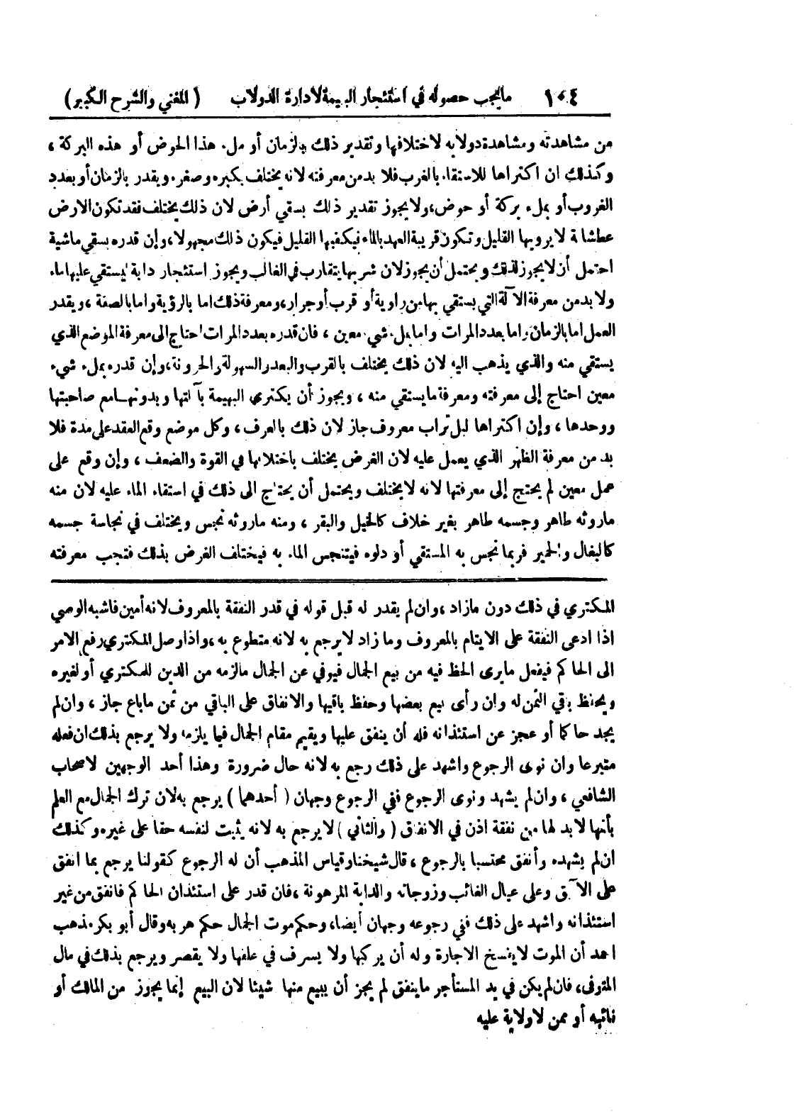 المكتري في ذلك دون ما زاد، وإن لم يقدر له قبل قوله في قدر النفقة بالمعروف لأنه أمين فأشبه الوصي إذا ادعى النفقة على الأيتام بالمعروف وما زاد لا يرجع به لأنه متطوع به، وإذا وصل المكتري رفع الأمر إلى الحاكم فيفعل ما يرى الحظ فيه من بيع الجمال فيوفي عن الجمال ما لزمه من الدين للمكتري أو لغيره ويحفظ باقي الثمن له وإن رأى بيع بعضها وحفظ باقيها والإنفاق على الباقي من ثمن ما باع جاز، وإن لم يجد حاكما أو عجز عن استئذانه فله أن ينفق عليها ويقيم مقام الجمال فيما يلزمه ولا يرجع بذلك إن فعله متبرعا وإن نوى الرجوع وأشهد على ذلك رجع به لأنه حال ضرورة وهذا أحد الوجهين لأصحاب الشافعي، وإن لم يشهد ونوى الرجوع ففي الرجوع وجهان (أحدهما) يرجع به لأن ترك الجمال مع العلم بأنها لابد لها من نفقة إذن في الإنفاق (والثاني) لا يرجع به لأنه يثبت لنفسه حقا على غيره وكذلك إن لم يشهده وأنفق محتسبا بالرجوع، قال شيخنا وقياس المذهب أن له الرجوع كقولنا يرجع بما أنفق على الآبق وعلى عيال الغائب وزوجاته والدابة المرهونة، فإن قدر على استئدان الحاكم فأنفق من غير استئذانه وأشهد على ذلك ففي رجوعه وجهان أيضا، وحكم موت الجمال حكم هربه وقال أبو بكر مذهب احمد ان الموت لا يفسخ الإجارة وله أن يركبها ولا يسرف في علفها ولا يقصر ويرجع بذلك في مال المتوفى، فإن لم يكن في يد المستأجر ما ينفق لم يجز أن يبيع منها شيئاً لأن البيع إنما يجوز من المالك أو نائبه أو ممن لا ولاية عليه