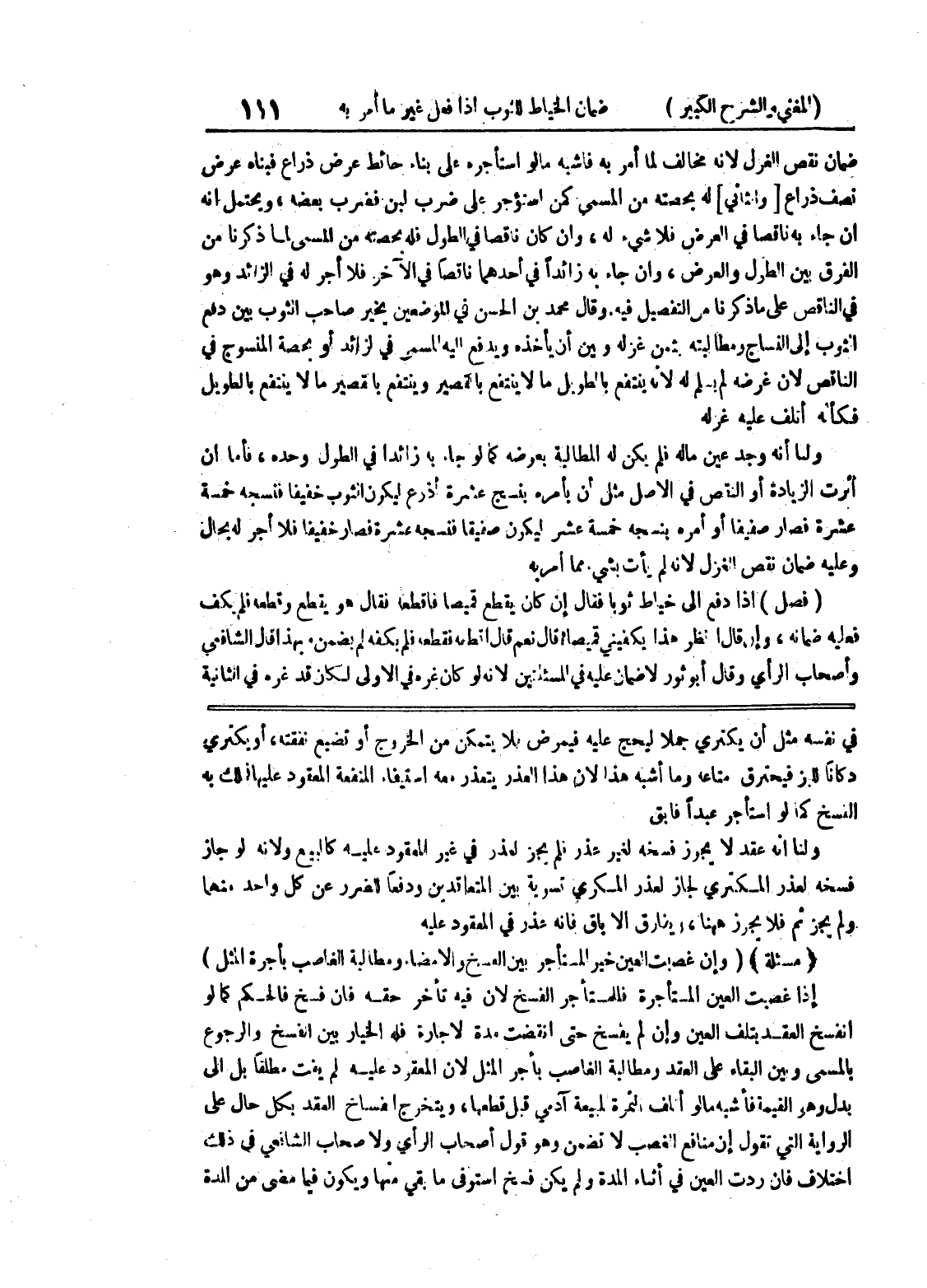 في نفسه مثل أن يكتري جملا ليحج عليه فيمرض فلا يتمكن من الخروج أو تضيع نفقته، أو يكتري دكاناً للبز فيحترق متاعه وما أشبه هذا لأن هذا العذر يتعذر معه استيفاء المنفعة المعقود عليها فملك به الفسخ كما لو استأجر عبداً فأبق ولنا أنه عقد لا يجوز فسخه لغير عذر فلم يجز لعذر في غير المعقود عليه كالبيع ولأنه لو جاز فسخه لعذر المكتري لجاز لعذر المكري تسوية بين المتعاقدين ودفعاً للضرر عن كل واحد منهما ولم يجز ثم فلا يجرز ههنا، ويفارق الإباق فإنه عذر في المعقود عليه * (مسألة) * (وإن غصبت العين خير المستأجر بين الفسخ والإمضاء ومطالبة الغاصب بأجرة المثل) إذا غصبت العين المستأجرة فللمستأجر الفسخ لأن فيه تأخر حقه فإن فسخ فالحكم كما لو انفسخ العقد بتلف العين وإن لم يفسخ حتى انقضت مدة لاجارة فله الخيار بين الفسخ والرجوع بالمسمى وبين البقاء على العقد ومطالبة الغاصب بأجر المثل لأن المعقود عليه لم يفت مطلقاً بل الى بدل وهو القيمة فأشبه ما لو أتلف الثمرة لمبيعة آدمي قبل قطعها، ويتخرج افساخ العقد بكل حال على الرواية التي تقول إن منافع الغصب لا تضمن وهو قول أصحاب الرأي ولأصحاب الشافعي في ذلك اختلاف فإن ردت العين في أثناء المدة ولم يكن فسخ استوفى ما بقي منها ويكون فيما مضى من المدة