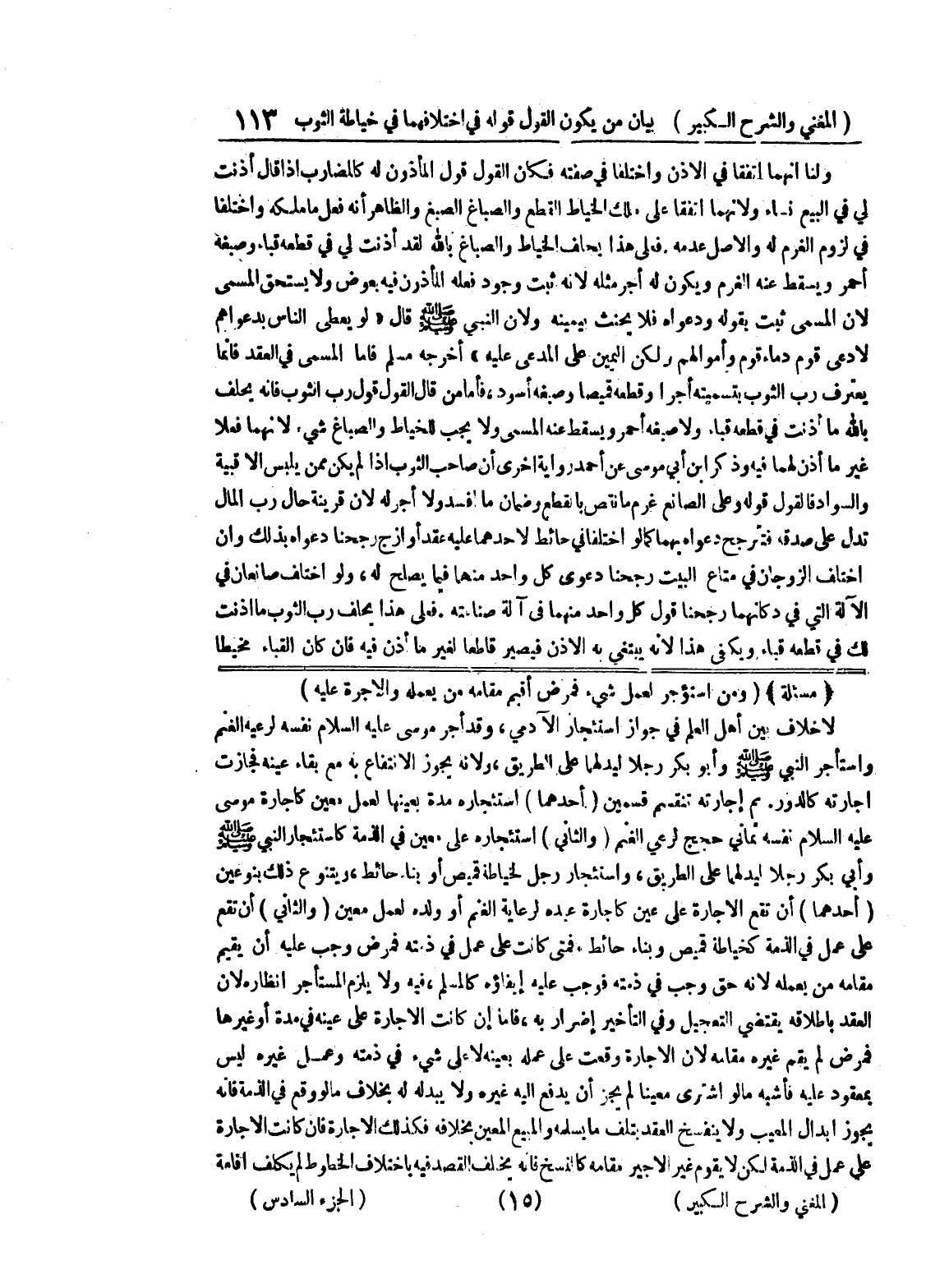 ثم إجارته تنقسم قسمين (أحدهما) استئجاره مدة بعينها لعمل معين كإجارة موسى عليه السلام نفسه ثماني حجج لرعي الغنم (والثاني) استئجاره على معنى في الذمة كاستئجار النبي صلى الله عليه وسلم وأبي بكر رجلا ليدلهما على الطريق، واستئجار رجل لخياطة قميص أو بناء حائط، ويتنوع ذلك بنوعين (أحدهما) أن تقع الإجارة على عين كإجارة عبده لرعاية الغنم أو ولده لعمل معين (والثاني) أن تقع على عمل في الذمة كخياطة قميص وبناء حائط.