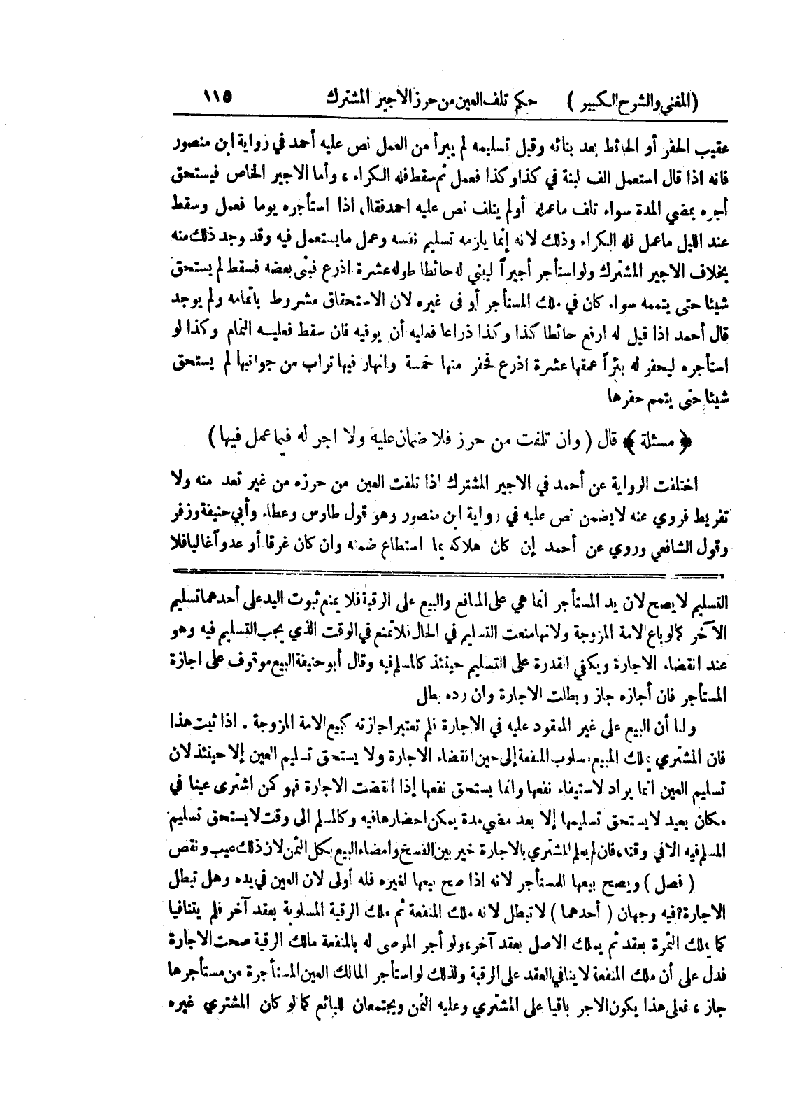 فإن المشتري يملك المبيع مسلوب المنفعة إلى حين انقضاء الإجارة ولا يستحق تسليم العين إلا حينئذ لأن تسليم العين إنما يراد لاستيفاء نفعها وإنما يستحق نفعها إذا انقضت الإجارة فهو كمن اشترى عينا في مكان بعيد لا يستحق تسليمها إلا بعد مضي مدة يمكن إحضارها فيه وكالمسلم إلى وقت لا يستحق تسليم المسلم فيه إلا في وقته، فإن لم يعلم المشتري بالإجارة خير بين الفسخ وإمضاء البيع بكل الثمن لأن ذلك عيب ونقص (فصل) ويصح بيعها للمستأجر لأنه إذا صح بيعها لغيره فله أولى لأن العين في يده وهل تبطل الإجارة؟ فيه وجهان (أحدهما) لا تبطل لأنه ملك المنفعة ثم ملك الرقبة المسلوبة بعقد آخر فلم يتنافيا كما يملك الثمرة بعقد ثم يملك الأصل بعقد آخر، ولو أجر الموصى له بالمنفعة مالك الرقبة صحت الإجارة فدل على أن ملك المنفعة لا ينافي العقد على الرقبة ولذلك لو استأجر المالك العين المستأجرة من مستأجرها جاز، فعلى هذا يكون الأجر باقيا على المشتري وعليه الثمن ويجتمعان للبائع كما لو كان المشتري غيره