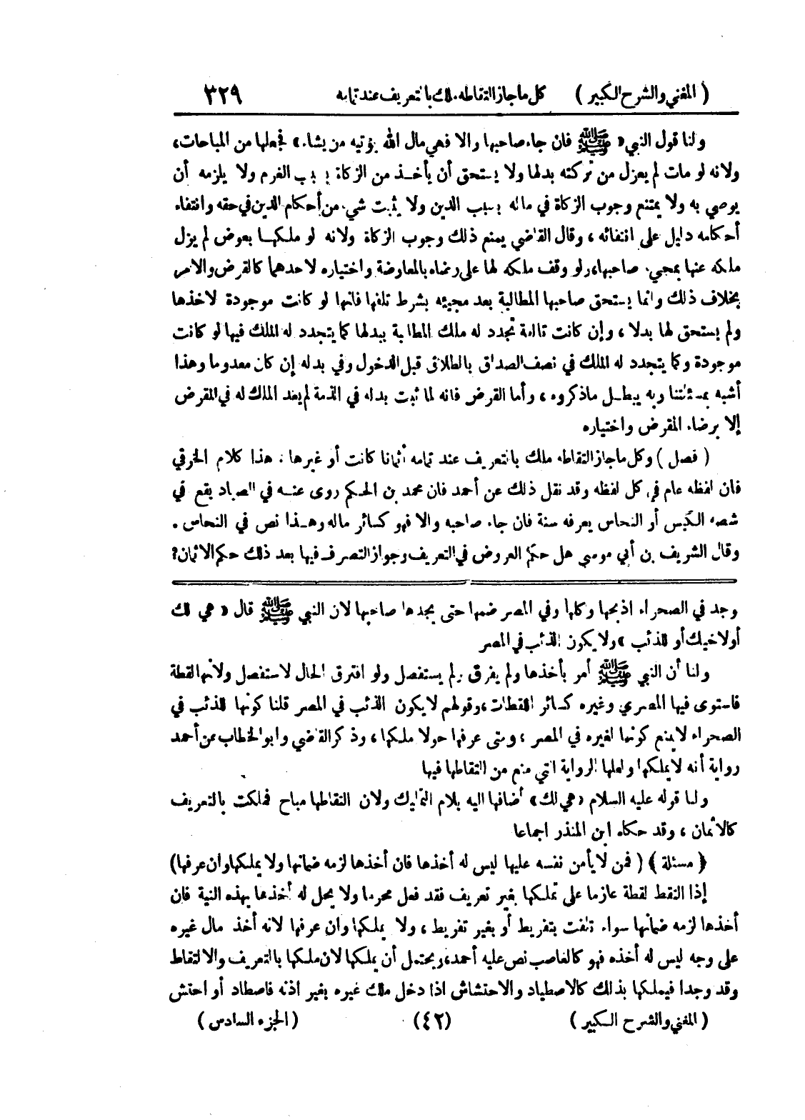 ولنا أن النبي صلى الله عليه وسلم أمر بأخذها ولم يفرق ولم يستقصل ولو افترق الحال لاستفصل ولأنها لقطة فاستوى فيها المصري وغيره كسائر اللقطات، وقولهم لا يكون الذئب في المصر قلنا كونها للذئب في الصحراء لا يمنع كونها لغيره في المصر، ومتى عرفها حولا ملكها، وذكر القاضي وابو الخطاب عن أحمد رواية أنه لا يملكها ولعلها الرواية التي منع من التقاطها فيها ولنا قوله عليه السلام " هي لك " أضافها إليه بلام التمليك ولأن التقاطها مباح فملكت بالتعريف كالأثمان، وقد حكاه ابن المنذر اجماعا * (مسألة) * (فمن لا يأمن نفسه عليها ليس له أخذها فإن أخذها لزمه ضمانها ولا يملكها وإن عرفها) إذا التقط لقطة عازماً على تملكها بغير تعريف فقد فعل محرما ولا يحل له أخذها بهذه النية فإن أخذها لزمه ضمانها سواء تلفت بتفريط أو بغير تفريط، ولا يملكها وإن عرفها لأنه أخذ مال غيره على وجه ليس له أخذه فهو كالغاصب نص عليه أحمد، ويحتمل أن يملكها لأن ملكها بالتعريف والالتقاط وقد وجدا فيملكها بذلك كالاصطياد والاحتشاش إذا دخل ملك غيره بغير إذنه فاصطاد أو احتش