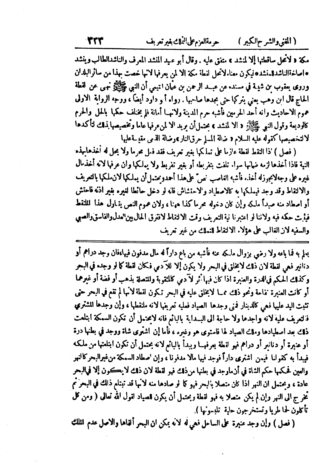والعين فحكمها حكم الشاة في أن ما وجد في بطنها من ذلك فهو لقطة لأن ذلك لا يكون إلا في البحر عادة، ويحتمل أن النهر إذا كان متصلاً بالبحر فهو كما لو صادها منه لأنها قد تبتلع ذلك في البحر ثم تخرج إلى النهر وإن لم يكن متصلاً به فهو لقطة ويحتمل أن يكون للصياد لقول الله تعالى (ومن كل تأكلون لحما طريا وتستخرجون حلية تلبسونها) (فصل) وإن وجد عنبرة على الساحل فهي له لأنه يمكن أن البحر ألقاها والأصل عدم الملك