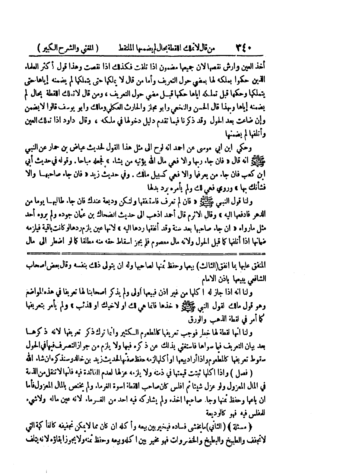 المنفق عليها بما أنفق (الثالث) بيعها وحفظ ثمنها لصاحبها وله أن يتولى ذلك بنفسه وقال بعض أصحاب الشافعي يبيعها بإذن الإمام ولنا أنه إذا جاز له أكلها من غير إذن فبيعها أولى ولم يذكر أصحابنا لها تعريفاً في هذه المواضع وهو قول مالك لقول النبي صلى الله عليه وسلم " خذها فإنما هي لك أو لأخيك أو للذئب " ولم يأمر بتعريفها كما أمر في لقطة الذهب والورق ولنا أنها لقطة لها خطر فوجب تعريفها كالمطعوم الكثير وإنما ترك ذكر تعريفها لأنه ذكرها بعد بيان التعريف فيما سواها فاستغنى بذلك عن ذكره فيها ولا يلزم من جواز التصرف فيها في الحول سقوط تعريفها كالمطعوم وإذا أراد بيعها أو أكلها لزمه حفظ صفتها لحديث زيد بن خالد وسنذكره إن شاء الله (فصل) وإذا أكلها ثبتت قيمتها في ذمته ولا يلزمه عزلها لعدم الفائدة فيه فإنها لا تنقل من الذمة في المال المعزول ولو عزل شيئاً ثم أفلس كان صاحب اللقطة أسوة الغرماء ولم يختص بالمال المعزول فأما إن باعها وحفظ ثمنها وجاء صاحبها أخذه ولم يشاركه فيه أحد من الغرماء لأنه عين ماله ولا شئ للمفلس فيه فهو كالوديعة * (مسألة) * (الثاني) ما يخشى فساده فيخير بين بيعه وأكله إن كان مما لا يمكن تجفيفه كالفاكهة التي لا تجفف والطبيخ والبطيخ والخضروات فهو مخير بين أكله وبيعه وحفظ ثمنه ولا يجوز إبقاؤه لأنه يتلف