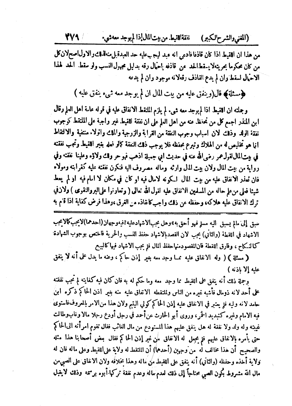 سبق إلى ما لم يسبق إليه مسلم فهو أحق به " وهل يجب الإشهاد عليه؟ فيه وجهان (أحدهما) لا يجب كما لا يجب الإشهاد في اللقطة (والثاني) يجب لأن القصد بالإشهاد حفظ النسب والحرية فاختص بوجوب الشهادة كالنكاح، وفارق اللقطة فإن المقصود منها حفظ المال فلم يجب الإشهاد فيها كالبيع * (مسألة) * (وله الإنفاق عليه مما وجد معه بغير إذن حاكم، وعنه ما يدل على أنه لا ينفق