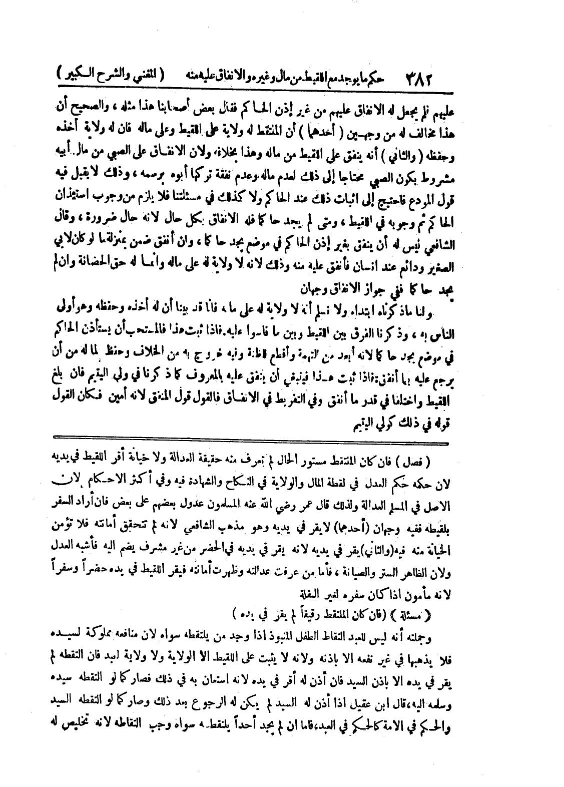 بلقيطه ففيه وجهان (أحدهما) لا يقر في يديه وهو مذهب الشافعي لأنه لم تتحقق أمانته فلا تؤمن الخيانة منه فيه (والثاني) يقر في يديه لأنه يقر في يديه في الحضر من غير مشرف يضم إليه فأشبه العدل ولأن الظاهر الستر والصيانة، فأما من عرفت عدالته وظهرت أمانته فيقر اللقيط في يده حضراً وسفراً لأنه مأمون إذا كان سفره لغير النقلة * (مسألة) * (فإن كان الملتقط رقيقاً لم يقر في يده) وجملته أنه ليس للعبد التقاط الطفل المنبوذ إذا وجد من يلتقطه سواه لأن منافعه مملوكة لسيده فلا يذهبها في غير نفعه إلا بإذنه ولأنه لا يثبت على اللقيط إلا الولاية ولا ولاية لعبد فإن التقطه لم يقر في يده إلا بإذن السيد فإن أذن له أقر في يده لأنه استعان به في ذلك فصار كما لو التقطه سيده وسلمه إليه، قال ابن عقيل إذا أذن له السيد لم يكن له الرجوع بعد ذلك وصار كما لو التقطه السيد والحكم في الأمة كالحكم في العبد، فأما إن لم يجد أحداً يلتقطه سواه وجب التقاطه لأنه تخليص له