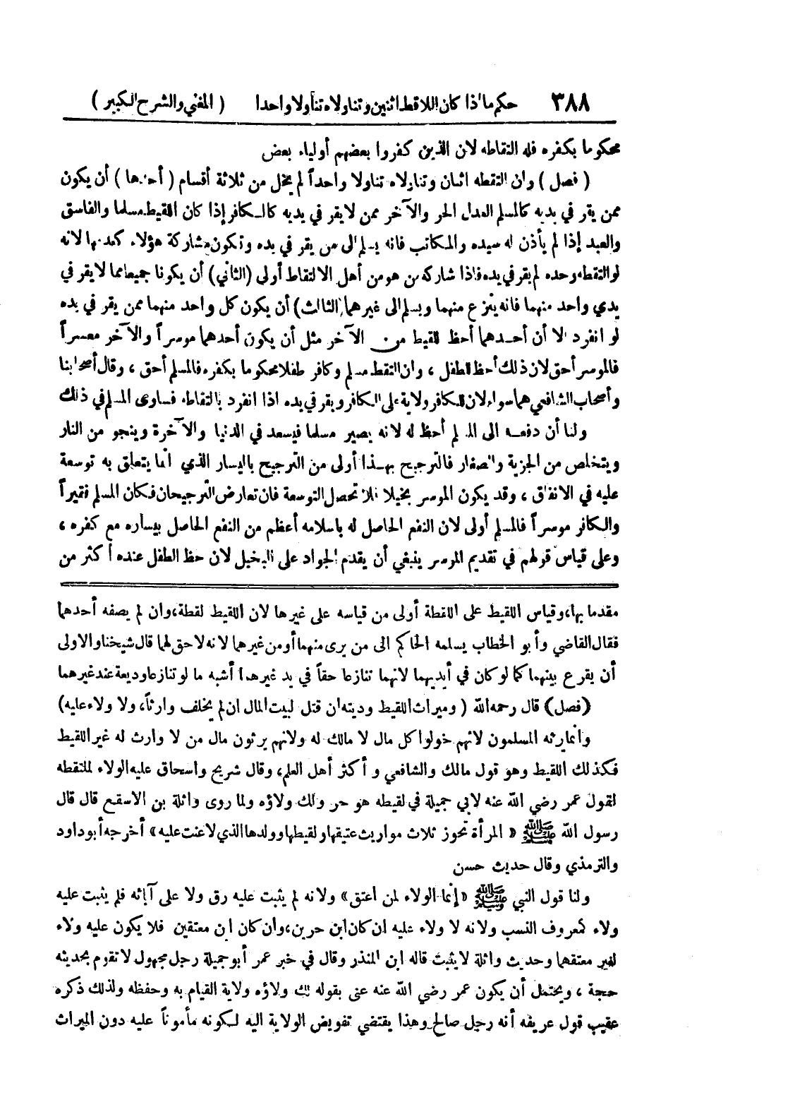 فكذلك اللقيط وهو قول مالك والشافعي وأكثر أهل العلم، وقال شريح واسحاق عليه الولاء لملتقطه لقول عمر رضي الله عنه لأبي جميلة في لقيطه هو حر ولك ولاؤه ولما روى واثلة بن الاسقع قال قال رسول الله صلى الله عليه وسلم " المرأة تحوز ثلاث مواريث عتيقها ولقيطها وولدها الذي لاعنت عليه " أخرجه أبو داود والترمذي وقال حديث حسن ولنا قول النبي صلى الله عليه وسلم " إنما الولاء لمن أعتق " ولأنه لم يثبت عليه رق ولا على آبائه فلم يثبت عليه ولاء كمعروف النسب ولأنه لا ولاء عليه ان كان ابن حرين، وإن كان ابن معتقين فلا يكون عليه ولاء لغير معتقهما وحديث واثلة لا يثبت قاله ابن المنذر وقال في خبر عمر أبو جميلة رجل مجهول لا تقوم بحديثه حجة، ويحتمل أن يكون عمر رضي الله عنه عنى بقوله لك ولاؤه ولاية القيام به وحفظه ولذلك ذكره عقيب قول عريفه إنه رجل صالح وهذا يقتضي تفويض الولاية إليه لكونه مأموناً عليه دون الميراث