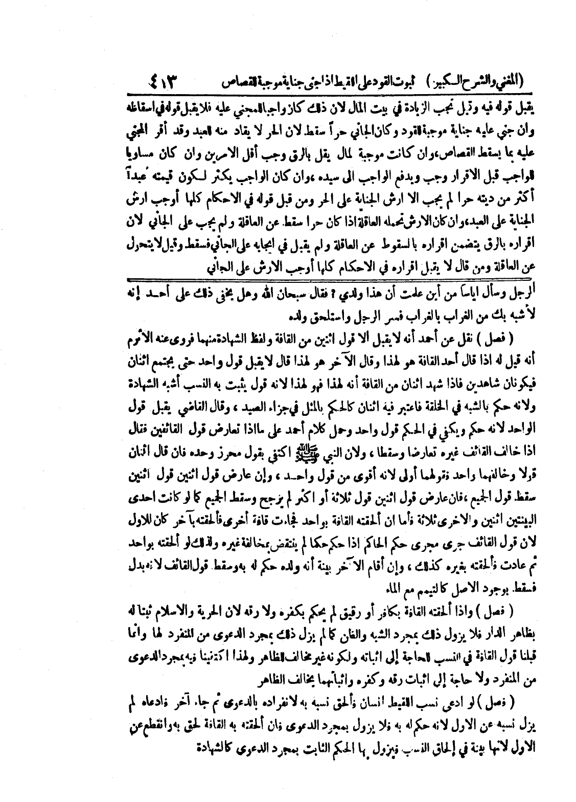الرجل وسأل إياساً من أين علمت أن هذا ولدي؟ فقال سبحان الله وهل يخفى ذلك على أحد أنه لأشبه بك من الغراب بالغراب فسر الرجل واستلحق ولده (فصل) نقل عن أحمد أنه لا يقبل إلا قول اثنين من القافة ولفظ الشهادة منهما فروى عنه الأثرم أنه قيل له إذا قال أحد القافة هو لهذا وقال الآخر هو لهذا قال لا يقبل قول واحد حتى يجتمع اثنان فيكونان شاهدين فإذا شهد اثنان من القافة أنه لهذا فهو لهذا لأنه قول يثبت به النسب أشبه الشهادة ولأنه حكم بالشبه في الخلقة فاعتبر فيه اثنان كالحكم بالمثل في جزاء الصيد، وقال القاضي يقبل قول الواحد لانه حكم ويكتفي في الحكم قول واحد وحمل كلام أحمد على ما إذا تعارض قول القائفين فقال إذا خالف القائف غيره تعارضا وسقطا، ولأن النبي صلى الله عليه وسلم اكتفى بقول محرز وحده فإن قال اثنان قولاً وخالفهما واحد فقولهما أولى لأنه أقوى من قول واحد، وإن عارض قول اثنين قول اثنين سقط قول الجميع، فإن عارض قول اثنين قول ثلاثة أو أكثر لم يرجح وسقط الجميع كما لو كانت إحدى البينتين اثنين والأخرى ثلاثة فأما إن ألحقته القافة بواحد فجاءت قافة أخرى فألحقته بآخر كان للأول لأن قول القائف جرى مجرى حكم الحاكم إذا حكم حكماً لم ينتقض بمخالفة غيره ولذلك لو ألحقته بواحد ثم عادت فألحقته بغيره كذلك، وإن أقام الآخر بينة أنه ولده حكم له وسقط قول القائف لأنه بدل فسقط بوجود الأصل كالتيمم مع الماء