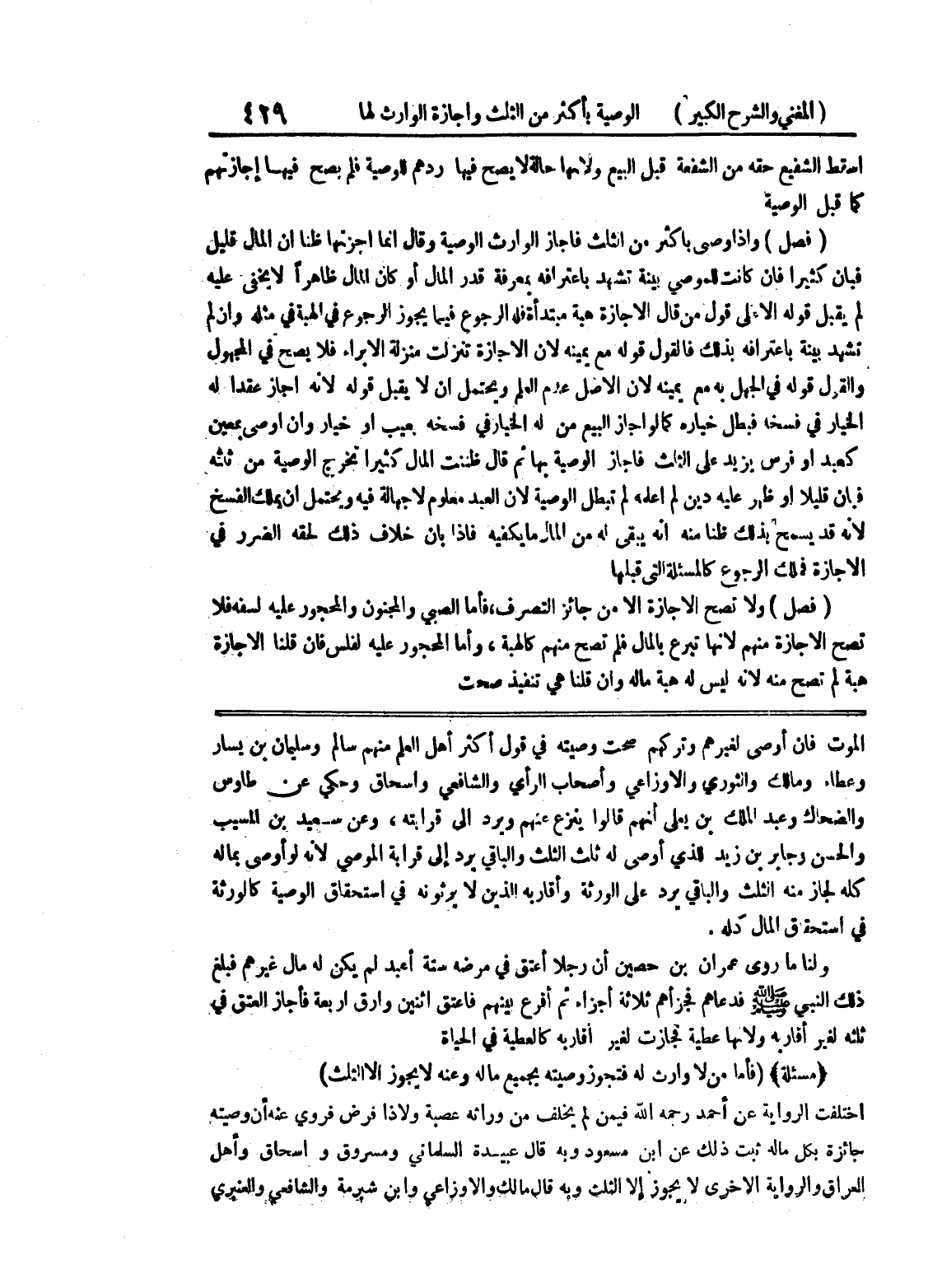 ولنا ما روى عمران بن حصين أن رجلاً أعتق في مرضه ستة أعبد لم يكن له مال غيرهم فبلغ ذلك النبي صلى الله عليه وسلم فدعاهم فجزأهم ثلاثة أجزاء ثم أقرع بينهم فأعتق اثنين وأرق أربعة فأجاز العتق في ثلثه لغير أقاربه ولأنها عطية فجازت لغير أقاربه كالعطية في الحياة * (مسألة) * (فأما من لا وارث له فتجوز وصيته بجميع ماله وعنه لا يجوز إلا الثلث) اختلفت الرواية عن أحمد رحمه الله فيمن لم يخلف من وراثه عصبة ولا ذا فرض فروي عنه أن وصيته جائزة بكل ماله ثبت ذلك عن ابن مسعود وبه قال عبيدة السلماني ومسروق واسحاق وأهل العراق والرواية الأخرى لا يجوز إلا الثلث وبه قال مالك والاوزاعي وابن شبرمة والشافعي والعنبري