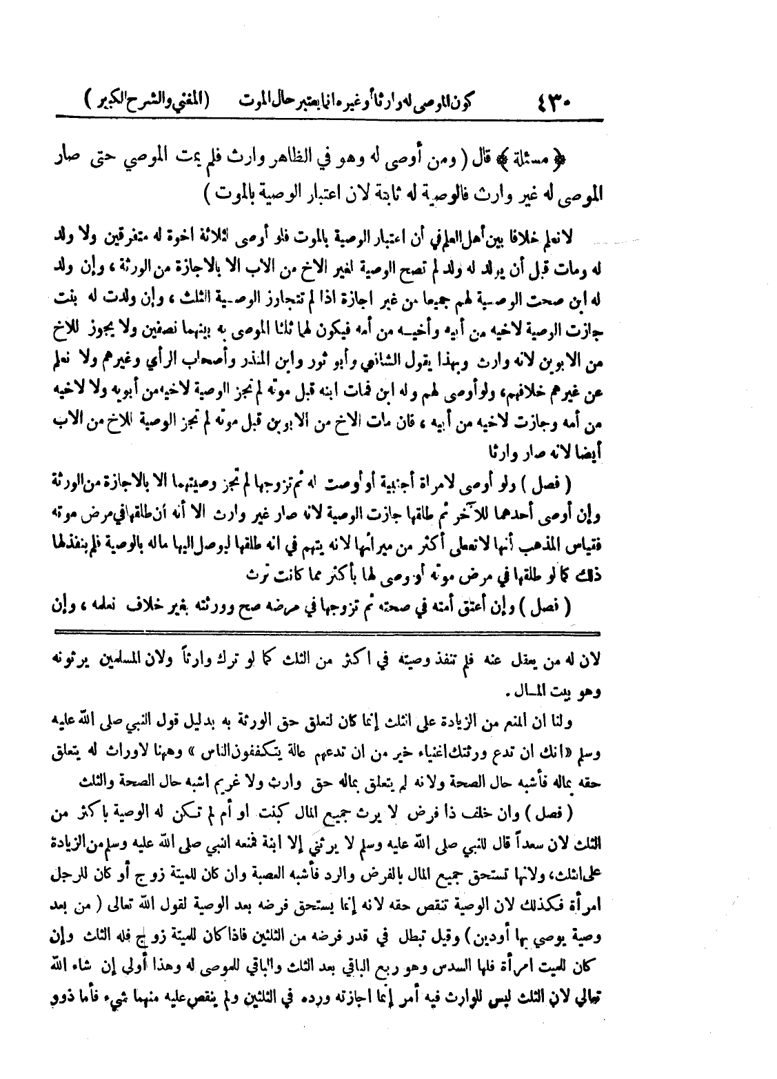 ولنا أن المنع من الزيادة على الثلث إنما كان لتعلق حق الورثة به بدليل قول النبي صلى الله عليه وسلم " إنك إن تدع ورثتك أغنياء خير من أن تدعهم عالة يتكففون الناس " وههنا لا وارث له يتعلق حقه بماله فأشبه حال الصحة ولانه لم ينعق بماله حق وارث ولا غريم أشبه حال الصحة والثلث (فصل) وإن خلف ذا فرض لا يرث جميع المال كبنت أو أم لم تكن له الوصية بأكثر من