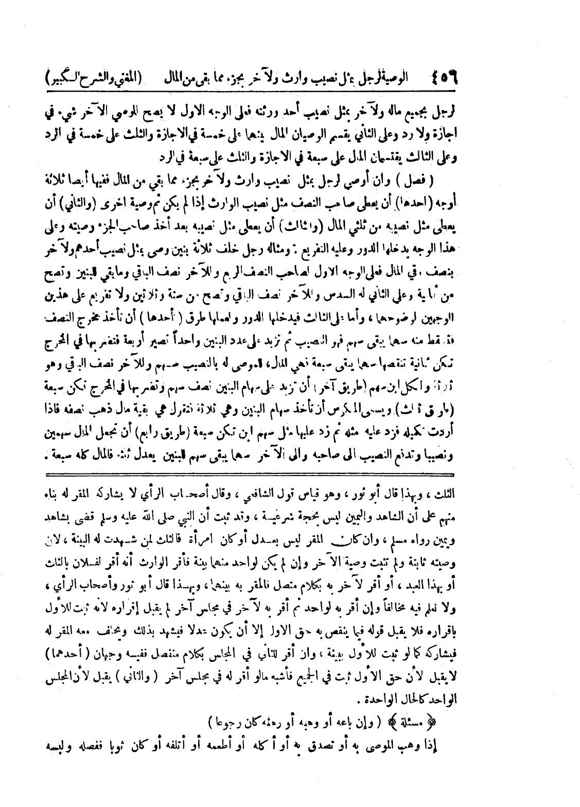 وصيته ثابتة ولم تثبت وصية الآخر وإن لم يكن لواحد منهما بينة فأقر الوراث أنه أقر لفلان بالثلث أو بهذا العبد، أو أقر لآخر به بكلام متصل فالمقر به بينهما، وبهذا قال أبو ثور وأصحاب الرأي، ولا نعلم فيه مخالفاً وإن أقر به لواحد ثم أقر به لآخر في مجلس آخر لم يقبل إقراره لأنه ثبت للأول بإقراره فلا يقبل قوله فيما ينقص به حق الأول إلا أن يكون عدلاً فيشهد بذلك ويحلف معه المقر له فيشاركه كما لو ثبت للأول ببينة، وإن أقر للثاني في المجلس بكلام منفصل ففيه وجهان (أحدهما) لا يقبل لأن حق الأول ثبت في الجميع فأشبه ما لو أقر له في مجلس آخر (والثاني) يقبل لأن المجلس الواحد كالحال الواحدة.