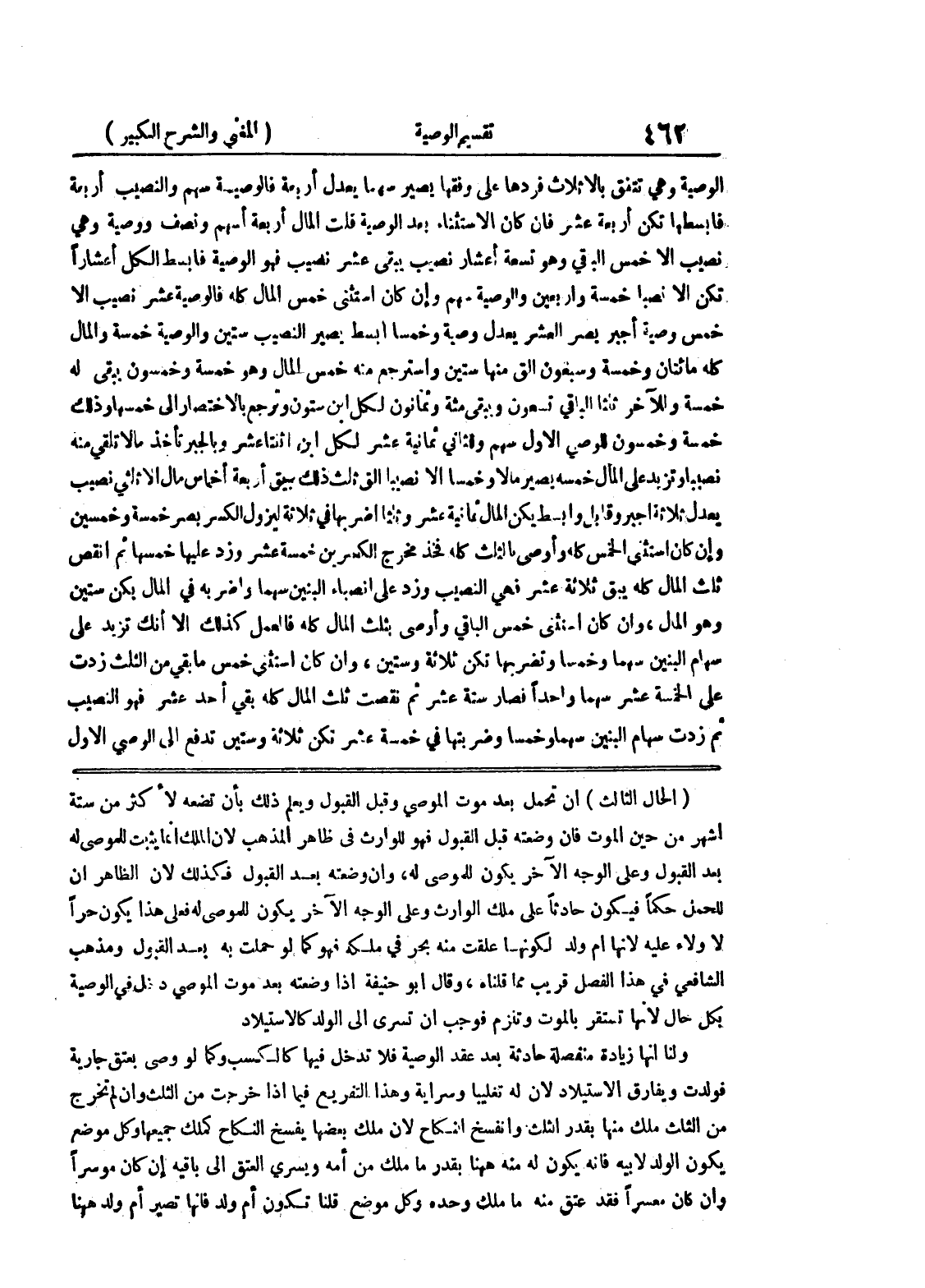 (الحال الثالث) أن تحمل بعد موت الموصي وقبل القبول ويعلم ذلك بأن تضعه لأكثر من ستة أشهر من حين الموت فإن وضعته قبل القبول فهو للوارث في ظاهر المذهب لأن الملك إنما يثبت للموصى له بعد القبول وعلى الوجه الآخر يكون للموصي له، وإن وضعته بعد القبول فكذلك لأن الظاهر أن للحمل حكماً فيكون حادثاً على ملك الوارث وعلى الوجه الآخر يكون للموصي له فعلى هذا يكون حراً لا ولاء عليه لأنها أم ولد لكونها علقت منه بحر في ملكه فهو كما لو حملت به بعد القبول ومذهب الشافعي في هذا الفصل قريب مما قلناه، وقال أبو حنيفة إذا وضعته بعد موت الموصي دخل في الوصية بكل حال لأنها تستقر بالموت وتلزم فوجب أن تسري إلى الولد كالاستيلاد ولنا أنها زيادة منفصلة حادثة بعد عقد الوصية فلا تدخل فيها كالكسب وكما لو وصى بعتق جارية فولدت ويفارق الاستيلاد لأن له تغليباً وسراية وهذا التفريع فيما إذا خرجت من الثلث وإن لم تخرج من الثلث ملك منها بقدر الثلث وانفسخ النكاح لأن ملك بعضها يفسخ النكاح كملك جميعها وكل موضع يكون الولد لابيه فان يكون له منه ههنا بقدر ما ملك من أمه ويسري العتق إلى باقيه إن كان موسراً وإن كان معسراً فقد عتق منه ما ملك وحده وكل موضع قلنا تكون أم ولد فإنها تصير أم ولد ههنا