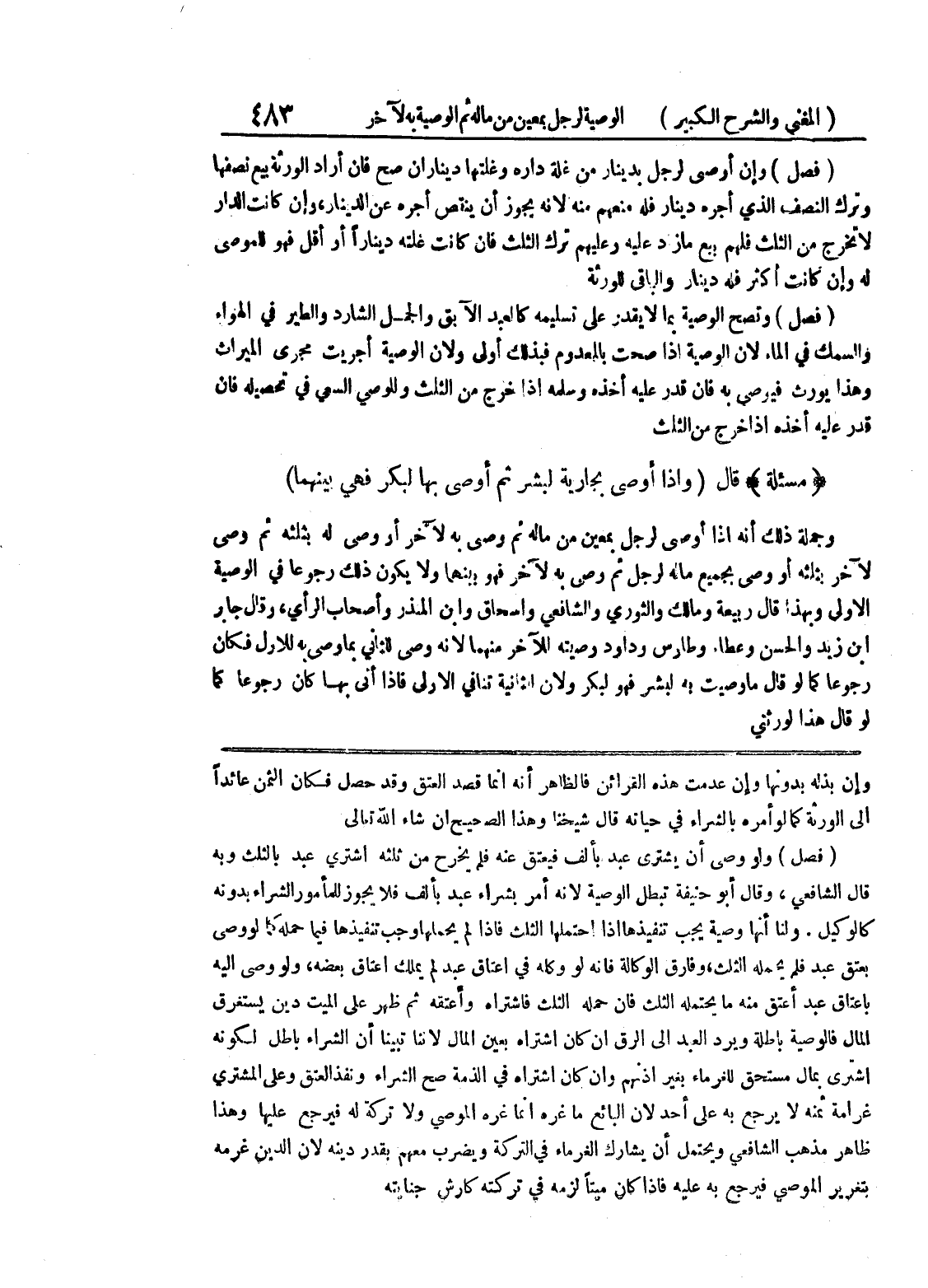 وإن بذله بدونها وإن عدمت هذه القرائن فالظاهر أنه إنما قصد العتق وقد حصل فكان الثمن عائداً إلى الورثة كما لو أمره بالشراء في حياته قال شيخنا وهذا الصحيح إن شاء الله تعالى (فصل) ولو وصى أن يشترى عبد بألف فيعتق عنه فلم يخرح من ثلثه اشتري عبد بالثلث وبه قال الشافعي، وقال أبوحينفة تبطل الوصية لأنه أمر بشراء عبد بألف فلا يجوز للمأمور الشراء بدونه كالوكيل.