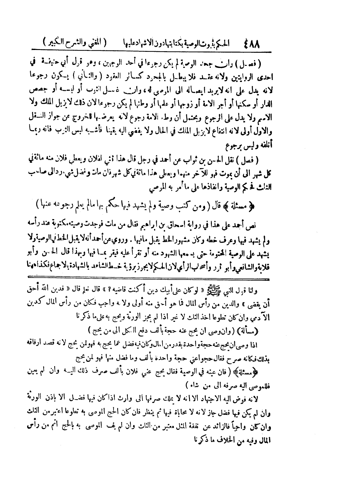 ولنا قول النبي صلى الله عليه وسلم " لو كان على أبيك دين أكنت قاضيه؟ " قال نعم قال " فدين الله أحق أن يقضى " والدين من رأس المال فما هو أحق منه أولى ولأنه واجب فكان من رأس المال كدين الآدمي وإن كان تطوعاً أخذ الثلث لا غير إذا لم يجز الورثة ويحج به على ما ذكرنا * (مسألة) * (وإن وصى أن يحج عنه حجة بألف دفع الكل إلى من يحج) إذا وصى أن يحج عنه حجة واحدة بقدر من المال وكان فيه فضل عما يحج به فهو لمن يحج لأنه قصد إرفاقه بذلك فكأنه صرح فقال حجوا عني حجة واحدة بألف وما فضل منها فهو لمن يحج * (مسألة) * (فإن عينه في الوصية فقال يحج عني فلان بألف صرف ذلك إليه وإن لم يعين فللموصى إليه صرفه إلى من شاء) لأنه فوض إليه الاجتهاد إلا أنه لا يملك صرفها إلى وارث إذا كان فيها فضل إلا بإذن الورثة وإن لم يكن فيها فضل جاز لأنه لا محاباة فيها ثم ينظر فإن كان الحج الموصى به تطوعاً اعتبر من الثلث وإن كان واجباً فالزائد عن نفقة المثل معتبر من الثلث وإن لم يف الموصى به بالحج أتم من رأس المال وفيه من الخلاف ما ذكرنا