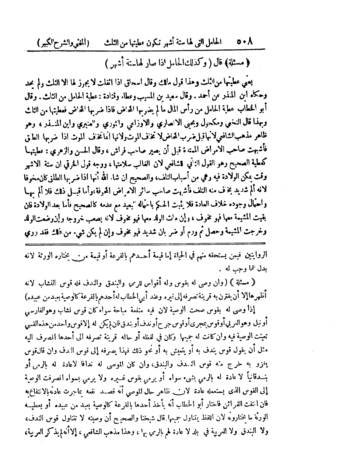 * (مسألة) * (وإن وصى له بقوس وله أقواس للرمى والبندق والندف فله قوس النشاب لأنه أظهرها إلا أن يقترن به قرينة تصرفه إلى غيره وعند أبي الخطاب له أحدهم بالقرعة كالوصية بعبد من عبيده) إذا وصى له بقوس صحت الوصية لأن فيه منفعة مباحة سواء كان قوس نشاب وهو الفارسي أو نبل وهو العربي أو قوس يمجرى أو قوس جرح أو ندف أو بندق فإن لم يكن له إلا قوس واحد من هذه القسي تعينت الوصية فيه وإن كانت له جميعها وكان في لفظه أو حاله قرينة تصرفه إلى أحدهما انصرف إليه مثل أن يقول قوس يندف به أو يتعيش به أو نحو ذلك فهذا يصرفه إلى قوس الندف وإن قال قوس يغزو به خرج منه قوس الندف والبندق، وإن كان الموصي له ندافا لا عادة له بالرمى أو بندقانياً لا عادة له بالرمي بشئ سواه أو يرمي بقوس غيره ولا يرمي بسواه انصرفت الوصية إلى القوس الذي يستعمله عادة لأن ظاهر حال الموصي أنه قصد نفعه بما جرت عادته بالانتفاع به فإن انتفت القرائن فاختار أبو الخطاب أنه يأخذ أحدها بالقرعة كالوصية بعبد من عبيده أو يعطيه الورثة ما يختارونه لأن اللفظ يتناول جميعها قال شيخنا والصحيح أن وصيته لا تتناول قوس الندف، ولا البندق ولا العربية في بلد لا عادة لهم بالرمي بها، وهذا مذهب الشافعي، إلا أنه لم يذكر العربية،