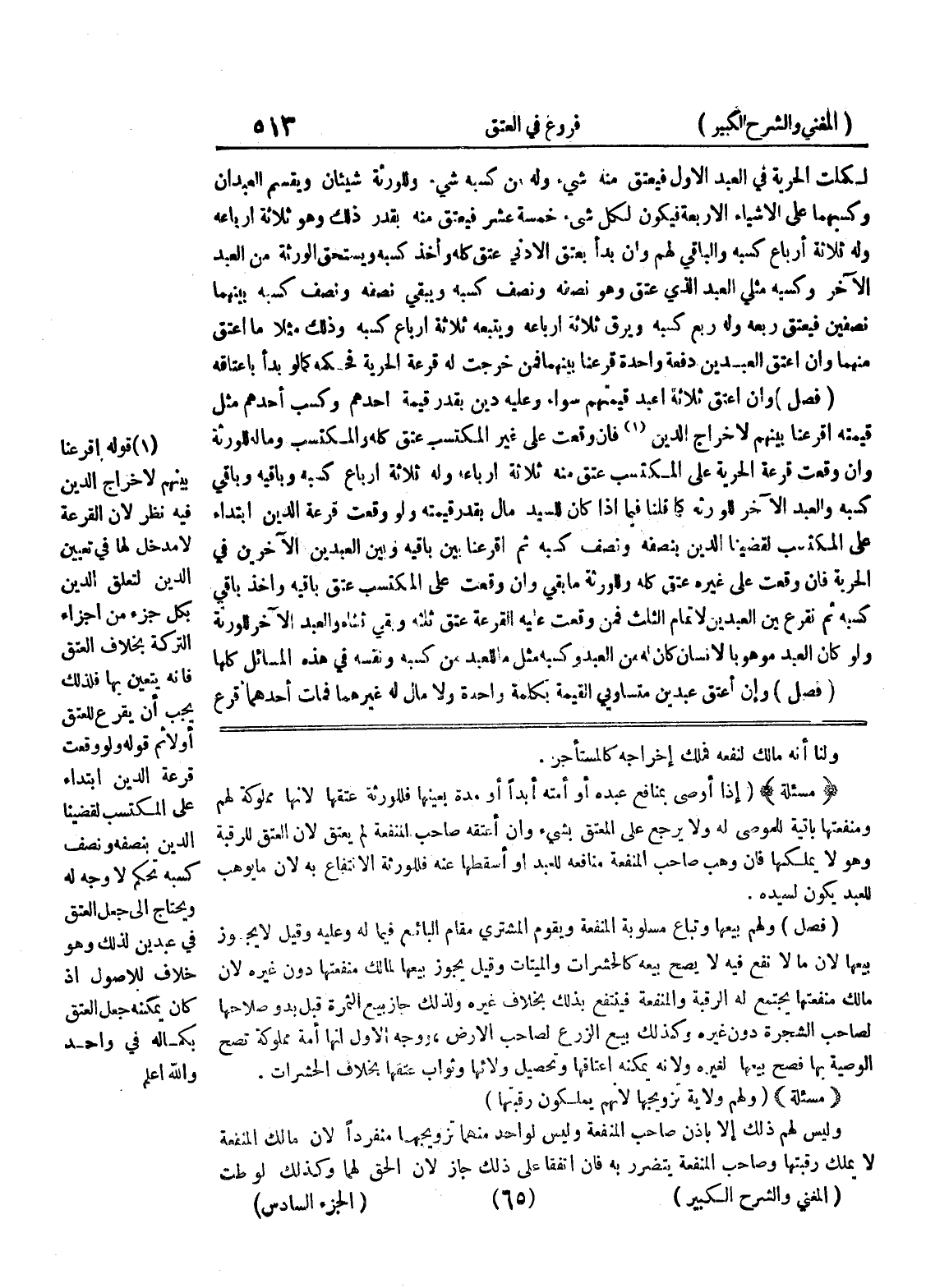(فصل) ولهم بيعها وتباع مسلوبة المنفعة ويقوم المشتري مقام البائع فيما له وعليه وقيل لا يجوز بيعها لأن ما لا نفع فيه لا يصح بيعه كالحشرات والميتات وقيل يجوز بيعها لمالك منفعتها دون غيره لأن مالك منفعتها يجتمع له الرقبة والمنفعة فينتفع بذلك بخلاف غيره ولذلك جاز بيع الثمرة قبل بدو صلاحها لصاحب الشجرة دون غيره وكذلك بيع الزرع لصاحب الأرض، ووجه الأول أنها أمة مملوكة تصح الوصية بها فصح بيعها لغيره ولأنه يمكنه إعتاقها وتحصيل ولائها وثواب عتقها بخلاف الحشرات.