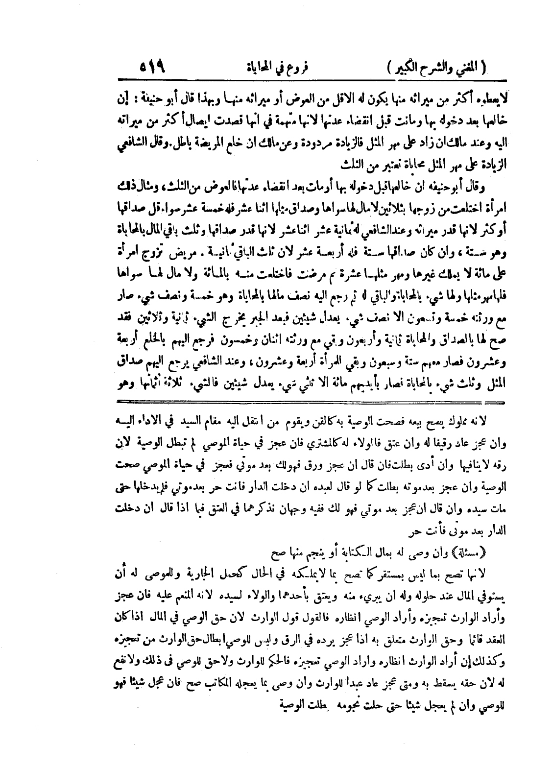 لأنه مملوك يصح بيعه فصحت الوصية به كالقن ويقوم من انتقل إليه مقام السيد في الأداء إليه وإن عجز عاد رقيقاً له وان عتق فالولاء له كالمشتري فإن عجز في حياة الموصي لم تبطل الوصية لأن رقه لا ينافيها وإن أدى بطلت فإن قال إن عجز ورق فهو لك بعد موتي فعجز في حياة الموصي صحت الوصية وإن عجز بعد موته بطلت كما لو قال لعبده إن دخلت الدار فأنت حر بعد موتي فلم يدخلها حتى مات سيده وإن قال إن عجز بعد موتي فهو لك ففيه وجهان نذكرهما في العتق فيما إذا قال إن دخلت الدار بعد موتي فأنت حر * (مسألة) * وإن وصى له بمال الكتابة أو ينجم منها صح لأنها تصح بما ليس بمستقر كما تصح بما لا يملكه في الحال كحمل الجارية وللموصى له أن يستوفي المال عند حلوله وله ان يبرئ منه ويعتق بأحدهما والولاء لسيده لأنه المنعم عليه فإن عجز وأراد الوارث تعجيزه وأراد الوصي أنظاره فالقول قول الوارث لأن حق الوصي في المال إذا كان العقد قائماً وحق الوارث متعلق به إذا عجز يوده في الرق وليس للوصي إبطال حق الوارث من تعجيزه وكذلك إن أراد الوارث أنظاره وأراد الوصي تعجيزه فالحكم للوارث ولا حق للوصي في ذلك ولا نفع