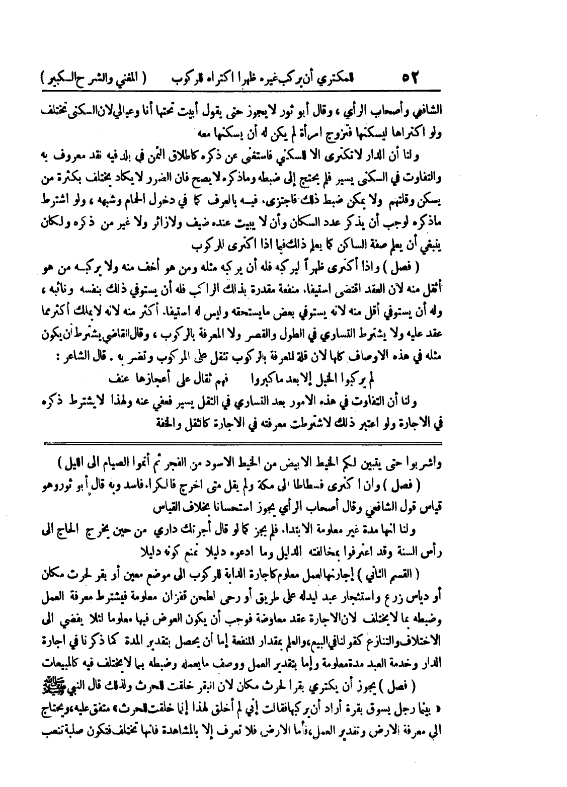 واشربوا حتى يتبين لكم الخيط الأبيض من الخيط الأسود من الفجر ثم أتموا الصيام إلى الليل) (فصل) وإن اكترى فسطاطا إلى مكة ولم يقل متى اخرج فالكراء فاسد وبه قال أبو ثور وهو قياس قول الشافعي وقال أصحاب الرأي يجوز استحسانا بخلاف القياس ولنا أنها مدة غير معلومة الابتداء فلم يجز كما لو قال أجرتك داري من حين يخرج الحاج إلى رأس السنة وقد اعترفوا بمخالفته الدليل وما ادعوه دليلا تمنع كونه دليلا (القسم الثاني) إجارتها العمل معلوم كإجارة الدابة للركوب إلى موضع معين أو بقر لحرث مكان أو دياس زرع واستئجار عبد ليدله على طريق أو رحى لطحن قفزان معلومة فيشترط معرفة العمل وضبطه بما لا يختلف لأن الإجارة عقد معاوضة فوجب أن يكون العوض فيها معلوما لئلا يفضي إلى الاختلاف والتنازع كقولنا في البيع، والعلم بمقدار المنفعة إما أن يحصل بتقدير المدة كما ذكرنا في إجارة الدار وخدمة العبد مدة معلومة وإما بتقدير العمل ووصف ما يعمله وضبطه بما لا يختلف فيه كالمبيعات (فصل) يجوز أن يكتري بقرا لحرث مكان لأن البقر خلقت للحرث ولذلك وقال النبي صلى الله عليه وسلم " بينما رجل يسوق بقرة أراد أن يركبها فقالت إني لم أخلق لهذا إنما خلقت للحرث " متفق عليه، ويحتاج إلى معرفة الأرض وتقدير العمل، فأما الأرض فلا تعرف إلا بالمشاهدة فإنها تختلف فتكون صلبة تتعب
