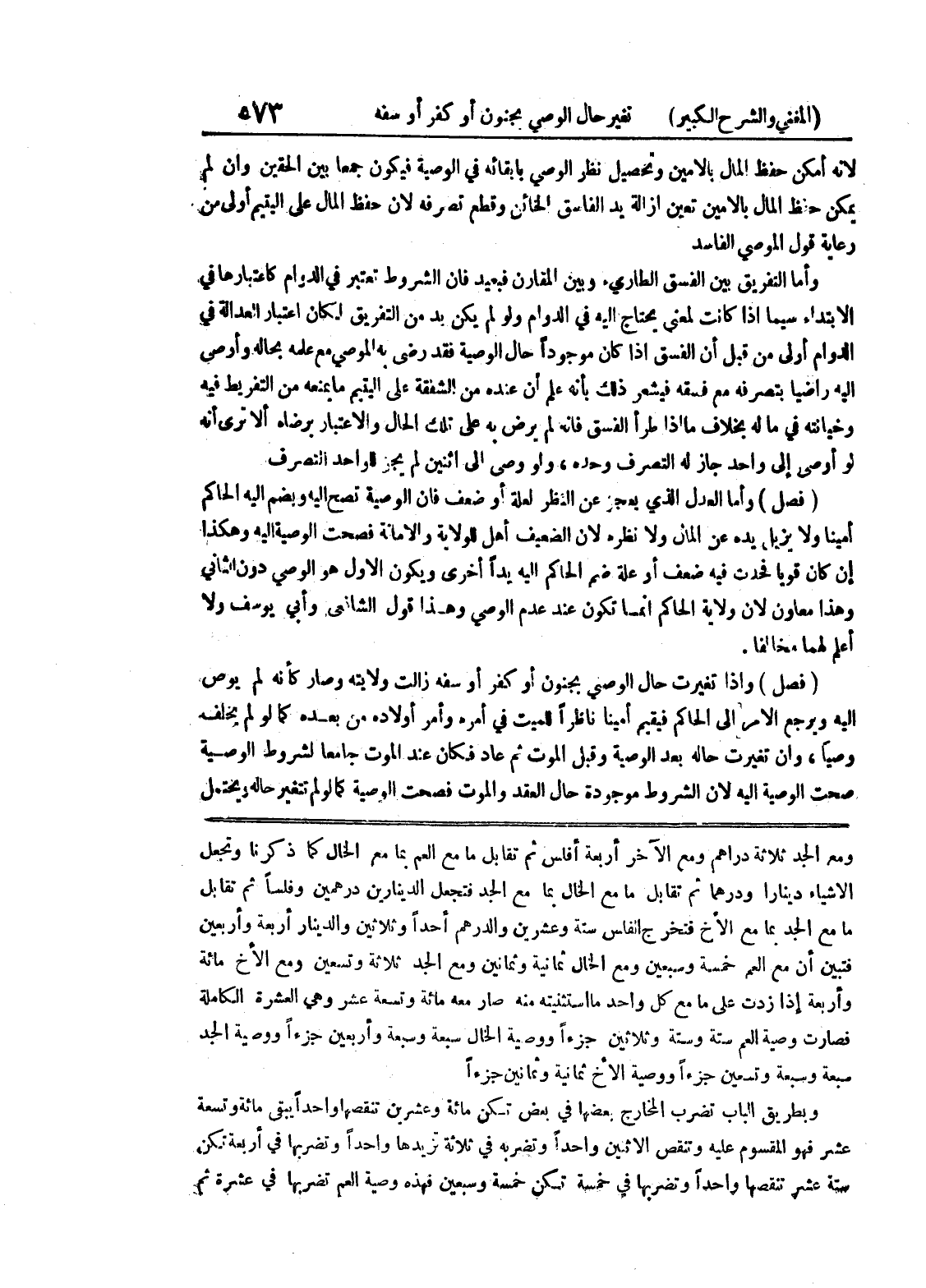 الأشياء ديناراً ودرهماً ثم تقابل ما مع الخال بما مع الجد فتجعل الدينارين درهمين وفلساً ثم تقابل ما مع الجد بما مع الأخ فتخرج الفلس ستة وعشرين والدرهم أحداً وثلاثين الدينار أربعة وأربعين فتبين مع العم خمسة وسبعين ومع الخال ثمانية وثمانين وثمانين ومع الجد ثلاثة وتسعين ومع الأخ مائة وأربعة إذا زدت على ما مع كل واحد ما استثنيته منه صار معه مائة وتسعة عشر وهي العشرة الكاملة فصارت وصية العم ستة وستة وثلاثين جزءاً ووصية الخال سبعة وسبعة وأربعين جزءاً ووصية الجد سبعة وسبعة وتسعين جزءاً ووصية الأخ ثمانية وثمانين جزءاً وبطريق الباب تضرب المخارج بعضها في بعض تكن مائة وعشرين تنقصها واحداً يبقى مائة وتسعة عشر فهو المقسوم عليه وتنقص الاثنين واحداً وتضربه في ثلاثة تزيدها واحداً وتضربها في أربعة تكن ستة عشر تنقصها واحداً وتضربها في خمسة تكن خمسة وسبعين فهذه وصية العم تضربها في عشرة ثم