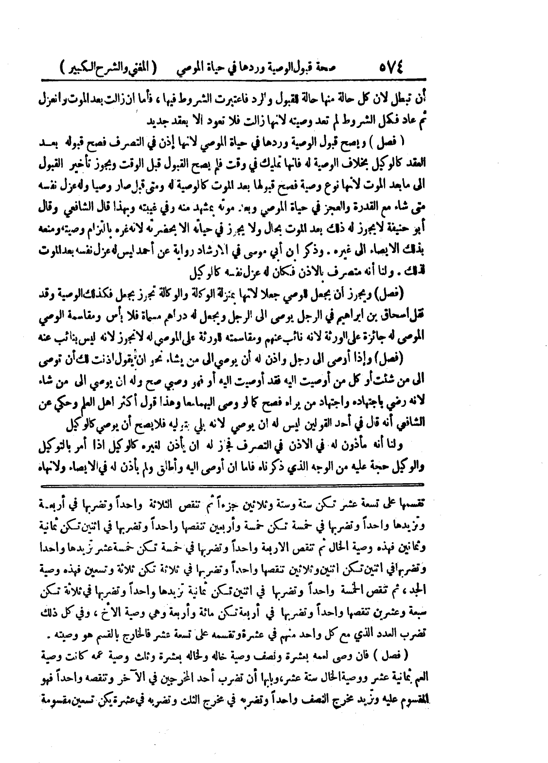 (فصل) فإن وصى لعمه بعشرة ونصف وصية خاله ولخاله بعشرة وثلث وصية عمه كانت وصية العم ثمانية عشر ووصية الخال ستة عشر، وبابها أن تضرب أحد المخرجين في الآخر وتنقصه واحداً فهو المقسوم عليه وتزيد مخرج النصف واحداً وتضربه في مخرج الثلث وتضربه في عشرة يكن تسعين مقسومة