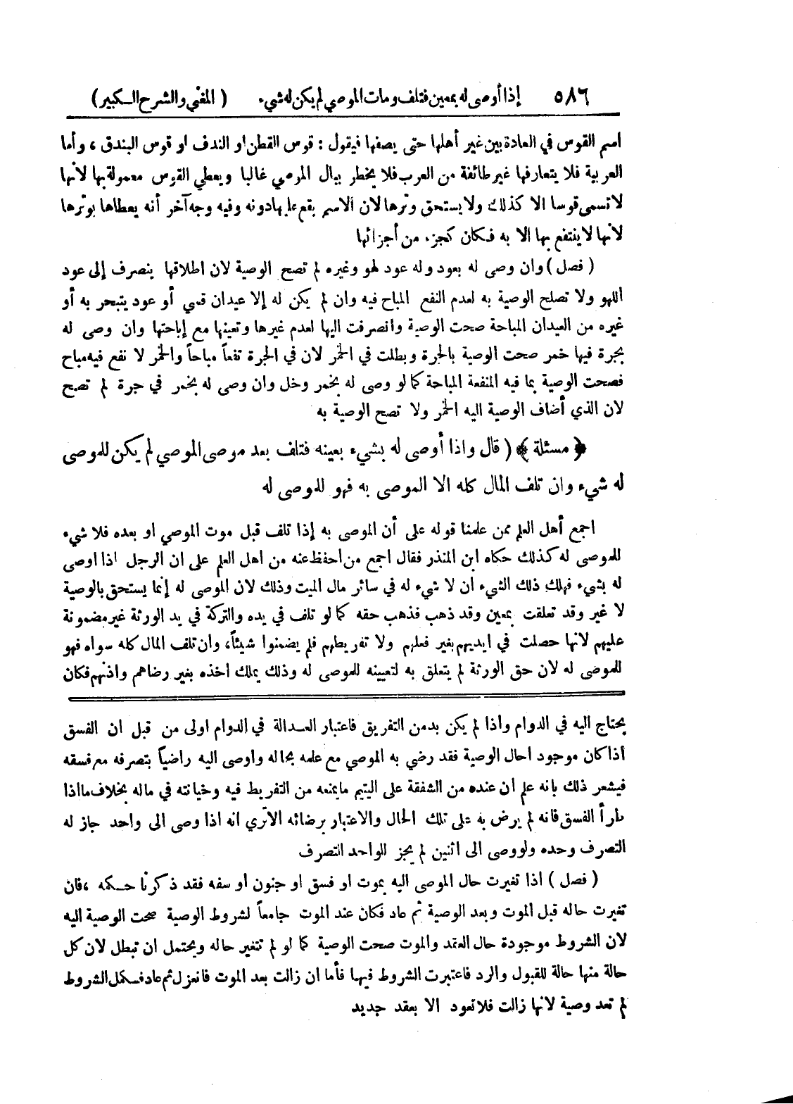 يحتاج إليه في الدوام وإذا لم يكن بد من التفريق فاعتبار العدالة في الدوام أولى من قبل أن الفسق إذا كان موجوداً حال الوصية فقد رضي به الموصي مع علمه بحاله وأوصى إليه راضياً بتصرفه مع فسقه فيشعر ذلك بأنه علم أن عنده من الشفقة على اليتيم ما يمنعه من التفريط فيه وخيانته في ماله بخلاف ما إذا طرأ الفسق فإنه لم يرض به على تلك الحال والاعتبار برضائه ألا ترى أنه إذا وصى إلى واحد جاز له التصرف وحده ولو وصى إلى اثنين لم يجز للواحد التصرف (فصل) إذا تغيرت حال الموصى إليه بموت أو فسق أو جنون أو سفه فقد ذكرنا حكمه، فإن تغيرت حاله قبل الموت وبعد الوصية ثم عاد فكان عند الموت جامعاً لشروط الوصية صحت الوصية إليه لأن الشروط موجودة حال العقد والموت صحت الوصية كما لو لم تتغير حاله ويحتمل أن تبطل لأن كل حالة منها حالة للقبول والرد فاعتبرت الشروط فيها فأما إن زالت بعد الموت فانعزل ثم عاد فكمل الشروط لم تعد وصية لأنها زالت فلا تعود إلا بعقد جديد