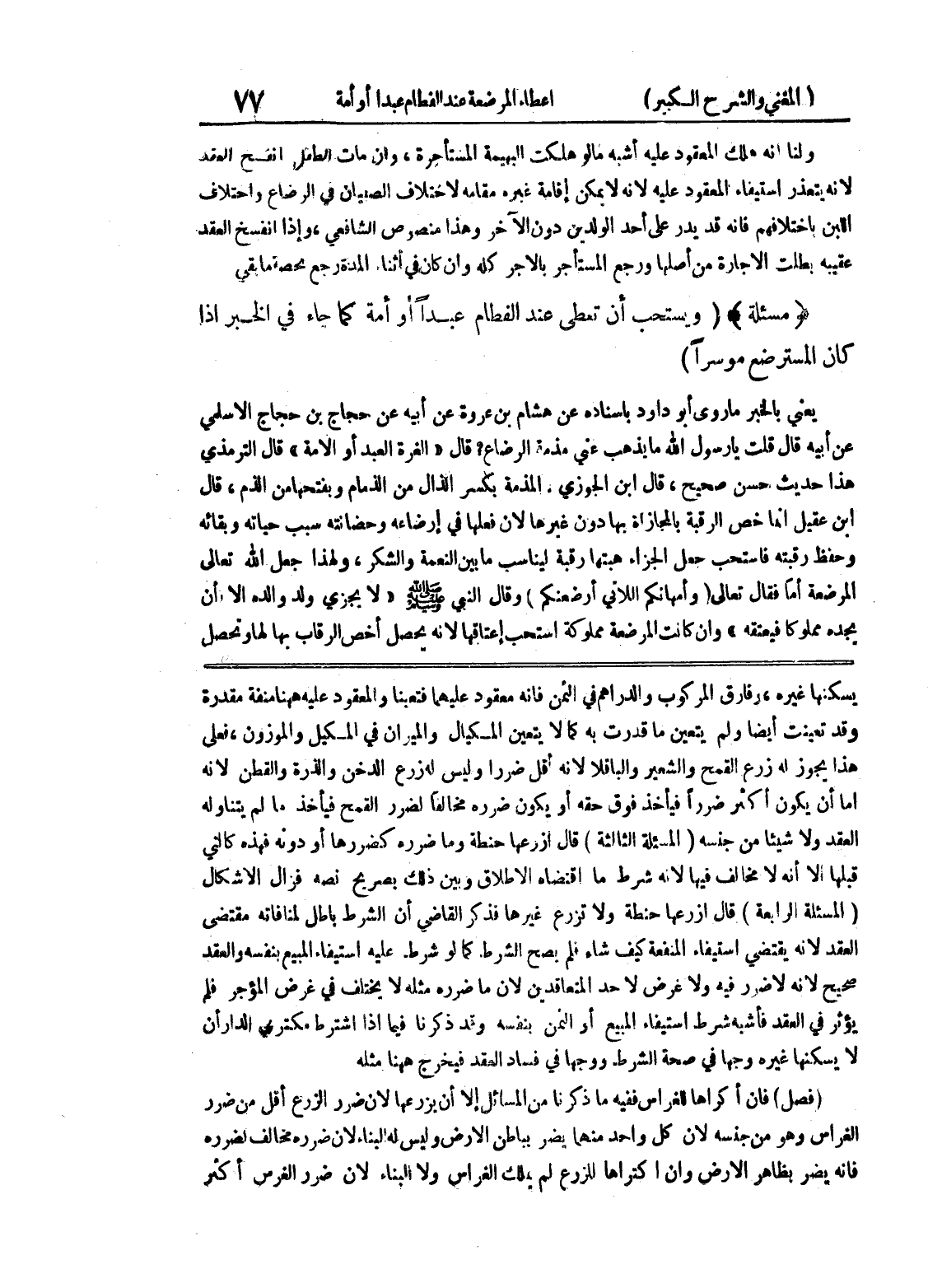 يسكنها غيره، وفارق المركوب والدراهم في الثمن فإنه معقود عليهما فتعينا والمعقود عليه ههنا منفة مقدرة وقد تعينت أيضا ولم يتعين ما قدرت به كما لا يتعين المكيال والميزان في المكيل والموزون، فعلى هذا يجوز له زرع القمح والشعير والباقلا لأنه أقل ضررا وليس له زرع الدخن والذرة والقطن لأنه إما أن يكون أكثر ضرراً فيأخذ فوق حقه أو يكون ضرره مخالفاً لضرر القمح فيأخذ ما لم يتناوله العقد ولا شيئاً من جنسه (المسألة الثالثة) قال ازرعها حنطة وما ضرره كضررها أو دونه فهذه كالتي قبلها إلا أنه لا مخالف فيها لأنه شرط ما اقتضاه الإطلاق وبين ذلك بصريح نصه فزال الإشكال (المسألة الرابعة) قال ازرعها حنطة ولا تزرع غيرها فذكر القاضي أن الشرط باطل لمنافاته مقتضى العقد لأنه يقتضي استيفاء المنفعة كيف شاء فلم يصح الشرط كما لو شرط عليه استيفاء المبيع بنفسه والعقد صحيح لأنه لا ضرر فيه ولا غرض لأحد المتعاقدين لأن ما ضرره مثله لا يختلف في غرض المؤجر فلم يؤثر في العقد فأشبه شرط استيفاء المبيع أو الثمن بنفسه وقد ذكرنا فيما إذا اشترط مكتري الدار أن لا يسكنها غيره وجها في صحة الشرط ووجها في فساد العقد فيخرج ههنا مثله (فصل) فإن أكراها للغراس ففيه ما ذكرنا من المسائل إلا أن يزرعها لأن ضرر الزرع أقل من ضرر الغراس وهو من جنسه لأن كل واحد منهما يضر بباطن الأرض وليس له البناء لأن ضرره مخالف لضرره فإنه يضر بظاهر الأرض وإن اكتراها للزرع لم يملك الغراس ولا البناء لأن ضرر الغرس أكثر