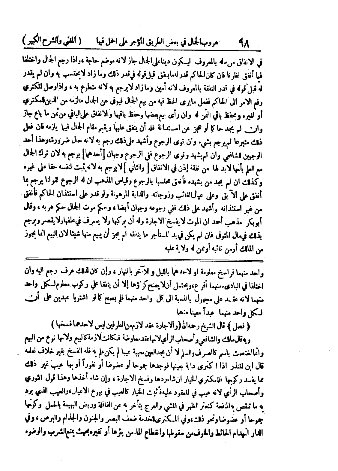 واحد منهما فراسخ معلومة أو لأحدهما بالليل وللآخر بالنهار، وإن كان لذلك عرف رجع إليه وإن اختلفا في البادئ منهما أقرع، ويحتمل أن لا يصح كراؤها إلا أن يتفقا على ركوب معلوم لكل واحد منهما لأنه عقد على مجهول بالنسبة إلى كل واحد منهما فلم يصح كما لو اشتريا عبدين على أن لكل واحد منهما عبداً معينا منهما * (فصل) * قال الشيخ رحمه الله (والإجارة عقد لازم من الطرفين ليس لأحدهما فسخها) وبه قال مالك والشافعي وأصحاب الراي لأنها عقد معاوضة فكانت لازمة كالبيع ولأنها نوع من البيع وإنما اختصت باسم كالصرف والسلم لا أن يجد العين معيبة عيباً لم يكن علم به فله الفسخ بغير خلاف نعلمه قال ابن المنذر إذا اكترى دابة بعينها فوجدها جموحا أو عضوضا أو نفوراً أو بها عيب غير ذلك مما يفسد ركوبها فللمكتري الخيار إن شاء ردها وفسخ الإجارة، وإن شاء أخذها وهذا قول الثوري وأصحاب الرأي لأنه عيب في المعقود عليه فأثبت الخيار كالعيب في بيوع الأعيان، والعيب الذي يرد به ما تنقص به المنفعة كتعثر الظهر في المشي والعرج يتأخر به عن القافلة وربض البهيمة بالحمل وكونها جموحا أو عضوضا ونحو ذلك، وفي المكترى للخدمة ضعف البصر والجنون والجذام والبرص، وفي الدار انهدام الحائط والخوف من سقوطها وانقطاع الماء من بئرها أو تغيره بحيث يمنع الشرب والوضوء
