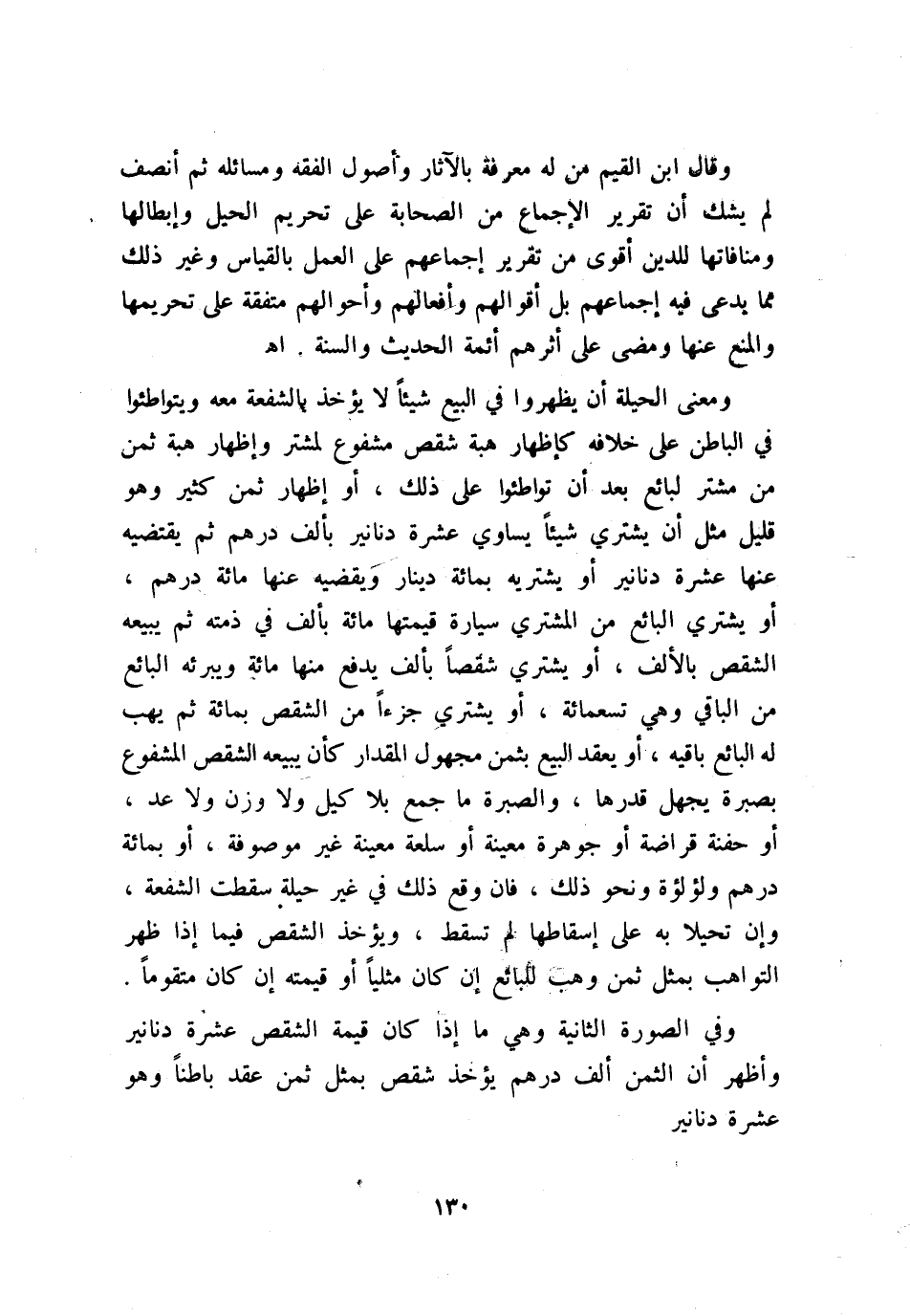وقال ابن القيم: من له معرفة بالآثار وأصول الفقه ومسائله، ثم أنصف لم يشك أن تقرير الإجماع من الصحابة على تحريم الحيل وإبطالها ومنافاتها للدين أقوى من تقرير إجماعهم على العمل بالقياس وغير ذلك مما يدعى في إجماعهم، بل أقوالهم وأفعالهم وأحوالهم متفقة على تحريمها، والمنع عنها ومضى على أثرهم أئمة الحديث والسُّنة. اهـ.