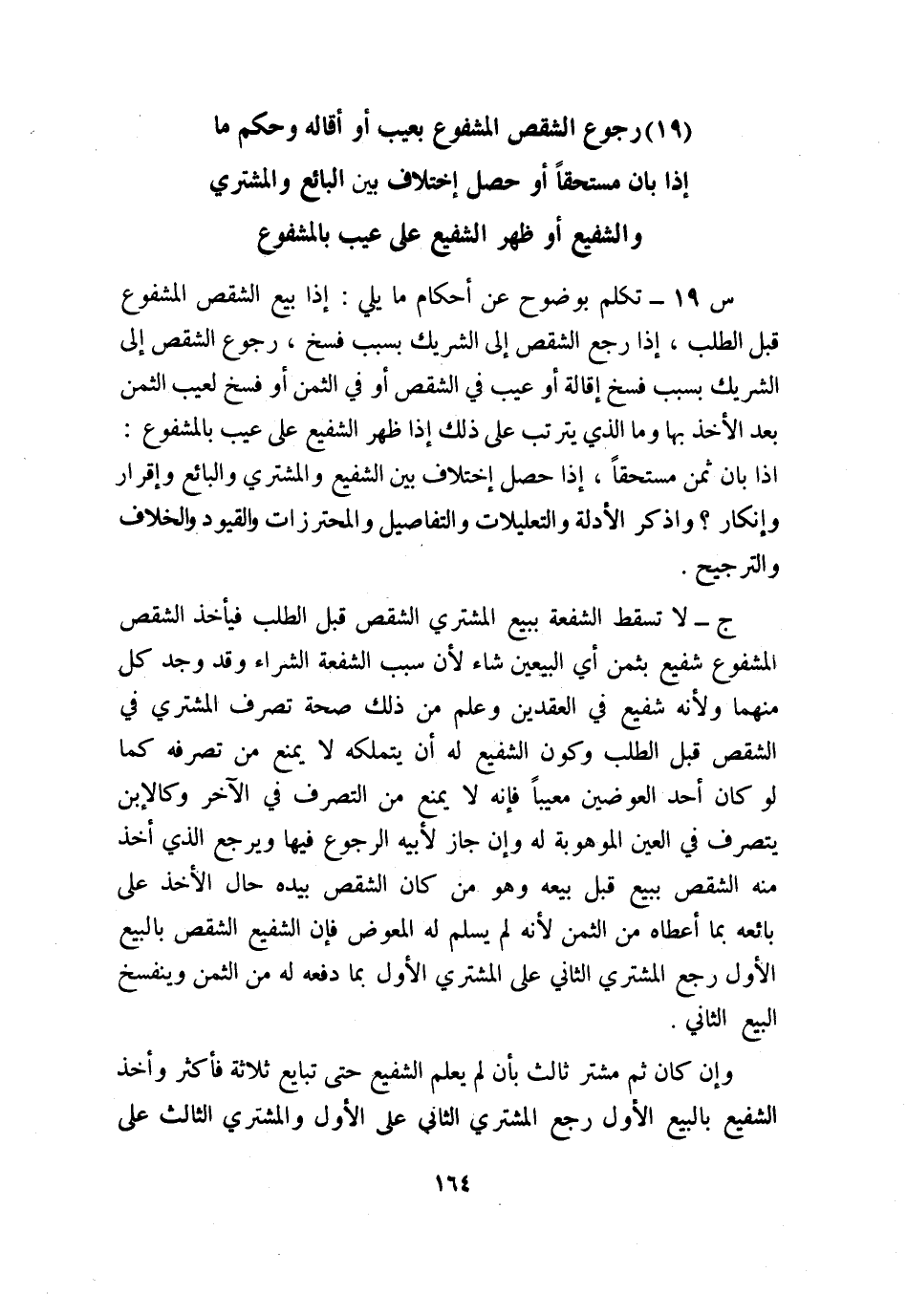 (19) رجوع الشقص المشفوع بعيب أو أقاله وحكم ما