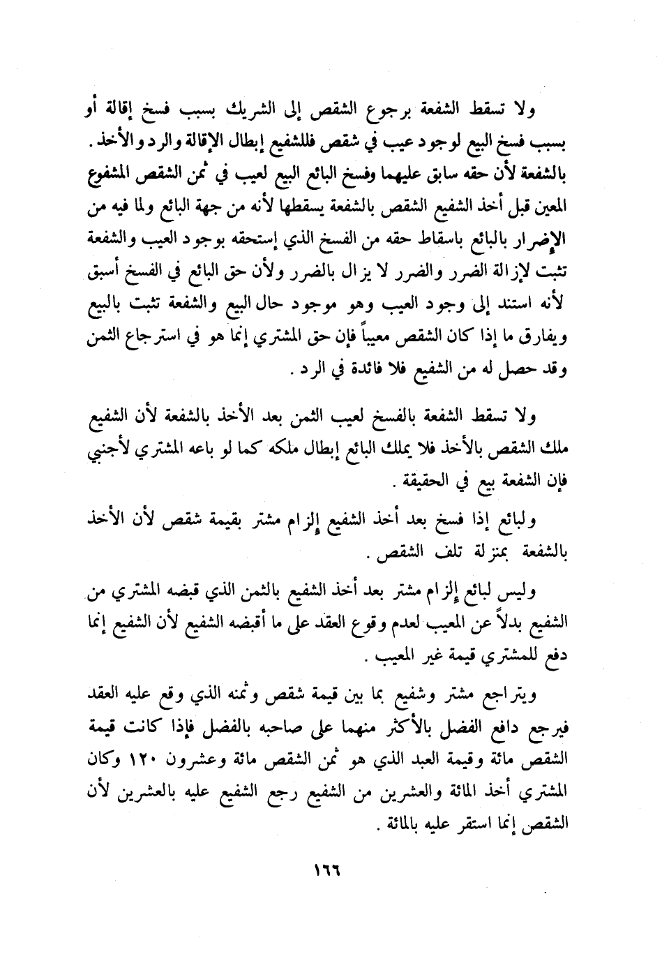 ولا تسقط الشفعة برجوع الشقص إلى الشريك بسبب فسخ إقالة أو بسبب فسخ البيع لوجود عيب في شقص فللشفيع إبطال الإقالة والرد والأخذ بالشفعة؛ لأن حقه سابق عليهما وفسخ البائع البيع لعيب في ثمن الشقص المشفوع المعين قبل أخذ الشفيع الشقص بالشفعة يسقطها؛ لأنه من جهة البائع، ولما فيه من الإضرار بالبائع بإسقاط حقه من الفسخ الذي إستحقه بوجود العيب والشفعة تثبت لإزالة الضرر والضرر لا يزال بالضرر، ولأن حق البائع في الفسخ أسبق؛ لأنه استند إلى وجود العيب وهو موجود حال البيع والشفعة تثبت بالبيع ويفارق ما إذا كان الشقص معيبًا، فإن حق المشتري إنما هو في استرجاع الثمن وقد حصل له من الشفيع فلا فائدة في الرد.