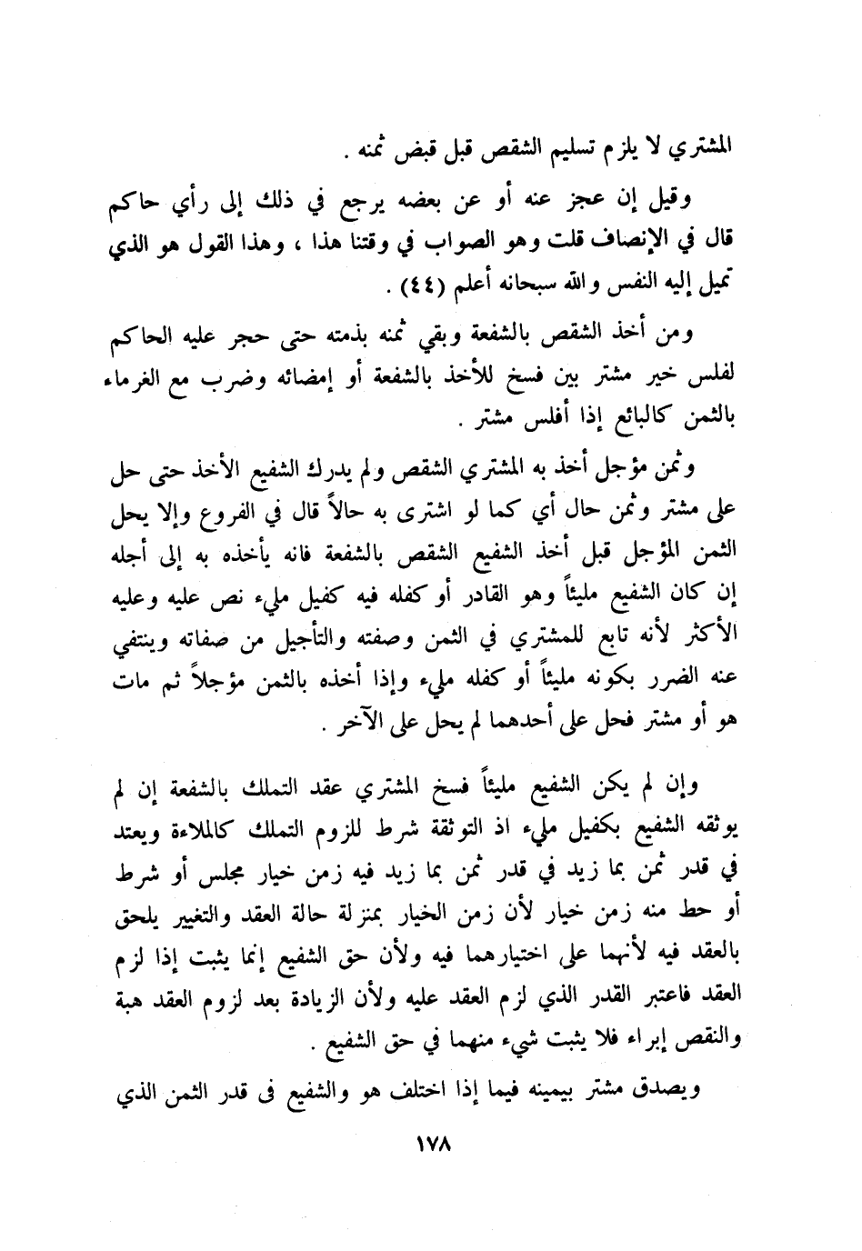 المشتري لا يلزم تسليم الشقص قبل قبض ثمنه.