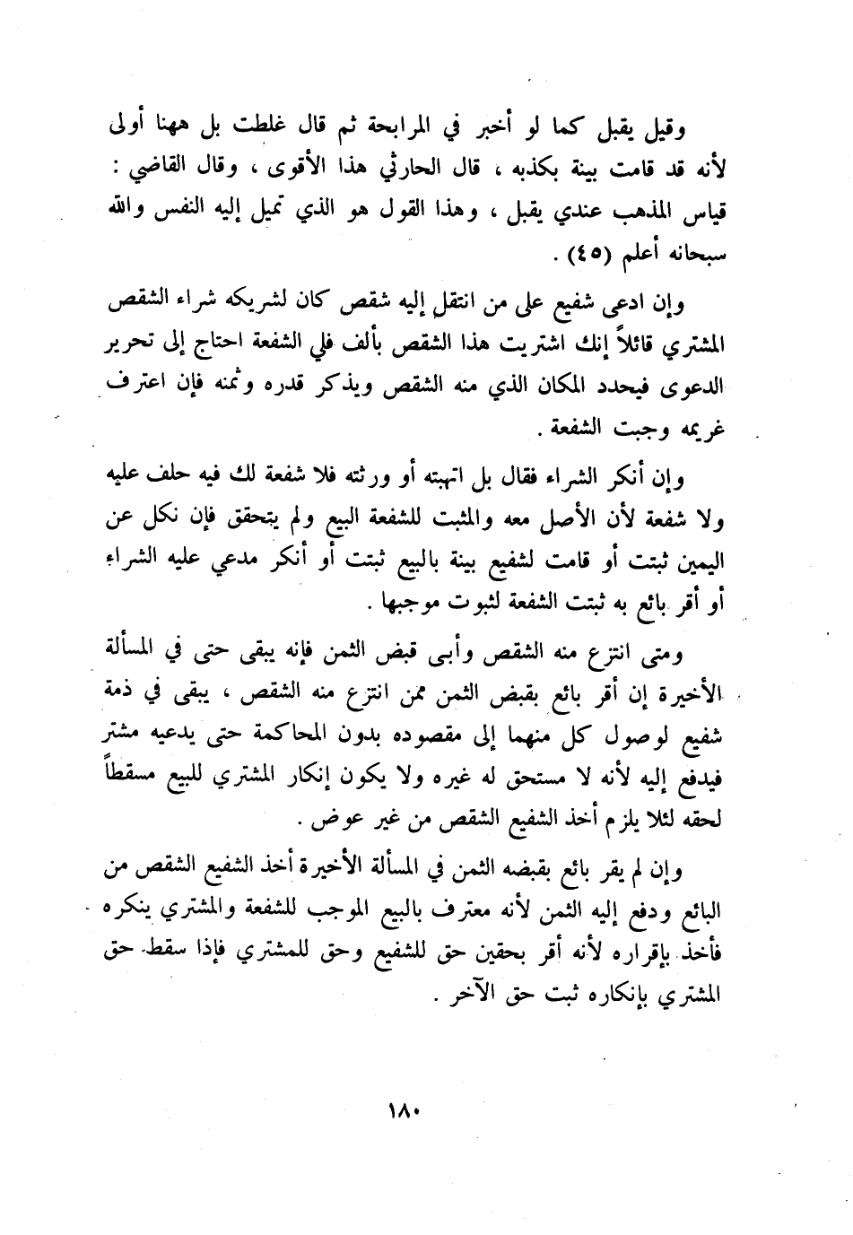 وإن ادعى شفيع على من انتقل إليه شقص كان لشريكه شراء الشقص المشتري قائلاً إنك اشتريت هذا الشقص بألف فلي الشفعة احتاج إلى تحرير الدعوى فيحدد المكان الذي منه الشقص ويذكر قدره وثمنه، فإن اعترف غريمه وجبت الشفعة.