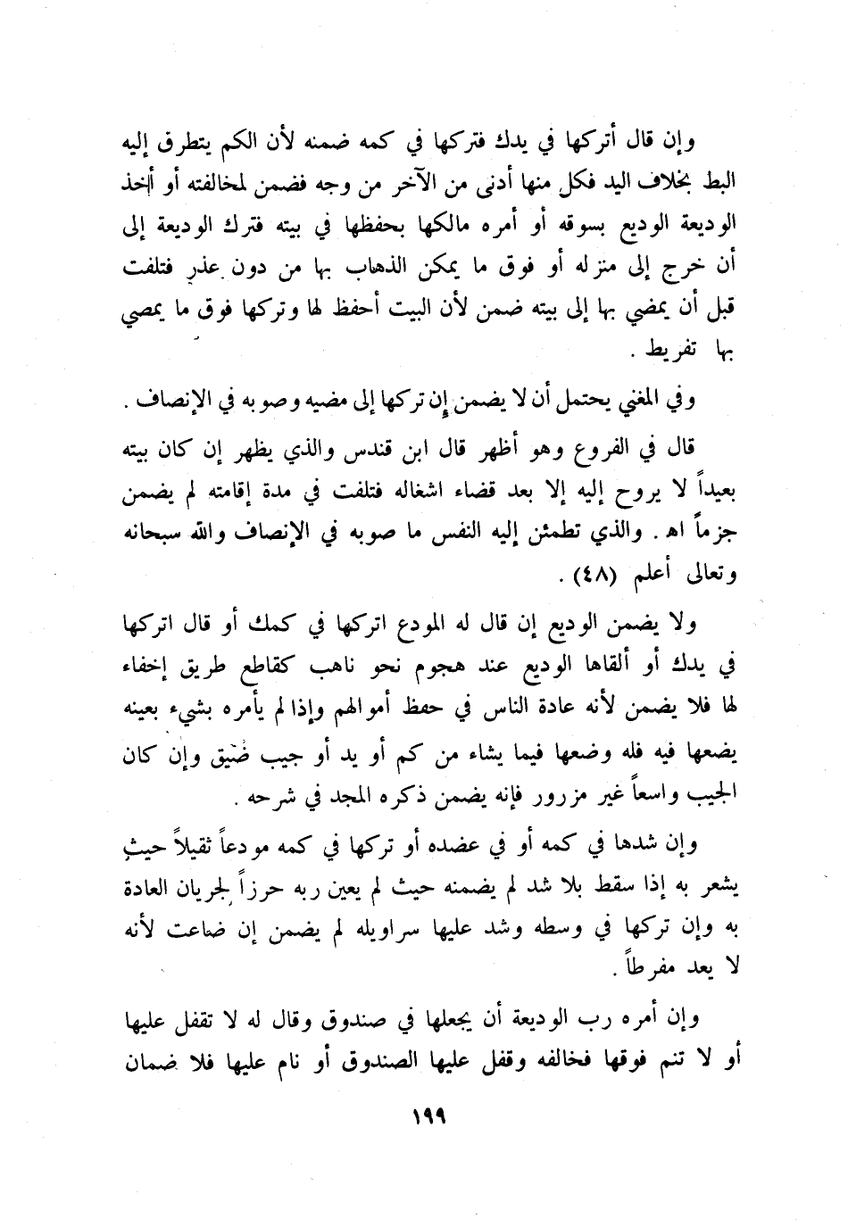 قال في «الفروع» : وهو أظهر، قال ابن قندس: والذي يظهر إن كان بيته بعيدًا لا يروح إليه إلا بعد قضاء إشغاله فتلفت في مدة إقامته لم يضمن جزمًا. اهـ. والذي تطمئن إليه النفس ما صوبه في «الإنصاف» ، والله سبحانه وتعالى أعلم.