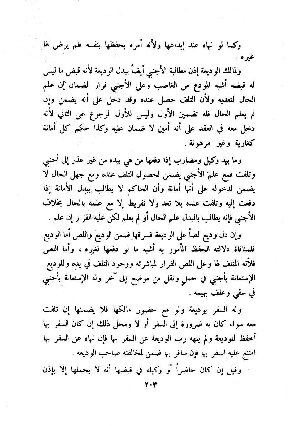 وله السفر بوديعة ولو مع حضور مالكها فلا يضمنها إن تلفت معه سواء كان به ضرورة إلى السفر أو لا ومحل ذلك إن كان السفر بها أحفظ للوديعة ولم ينهه رب الوديعة عن السفر بها، فإن نهاه عن السفر بها امتنع عليه السفر بها، فإن سافر بها ضمن لمخالفته صاحب الوديعة.