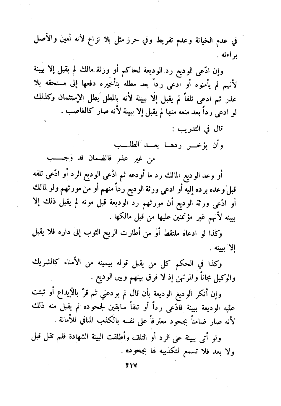 أو وعد الوديع المالك رد ما أودعه ثم ادّعى الوديع الرد أو ادّعى تلفه قبل وعده برده إليه أو ادعى ورثة الوديع ردًا منهم أو من مورثهم ولو لمالك أو ادّعى ورثة الوديع أن مورثهم رد الوديعة قبل موته لم يقبل ذلك إلا ببينة؛ لأنهم غير مؤتمنين عليها من قبل مالكها.