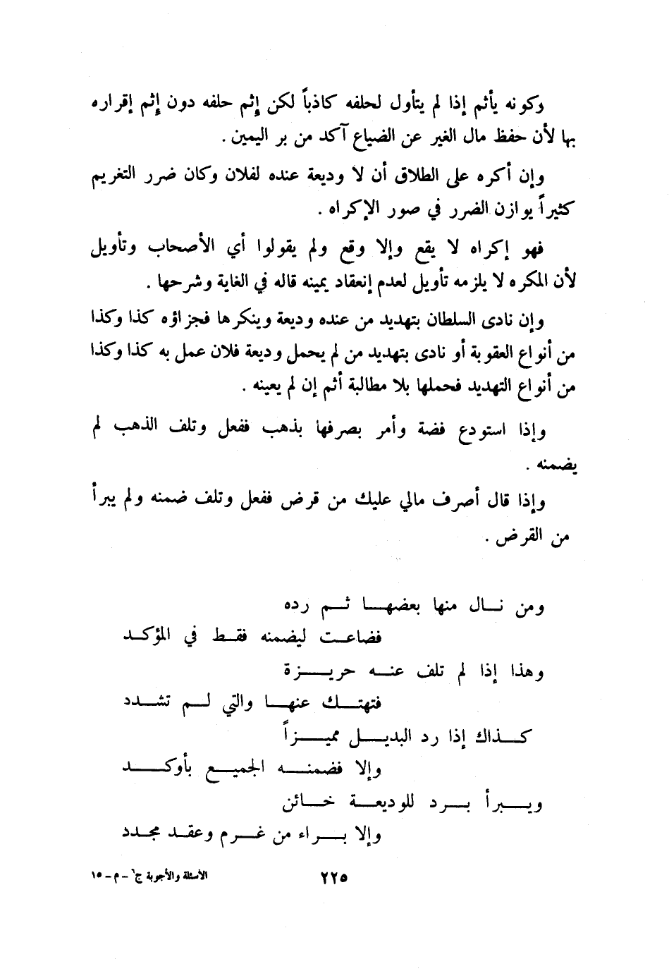 وإن نادى السلطان بتهديد من عنده وديعة وينكرها فجزاؤه كذا وكذا من أنواع العقوبة أو نادى بتهديد من لم يحمل وديعة فلان عمل به كذا وكذا من أنواع التهديد فحملها بلا مطالبة أثم إن لم يعينه.
