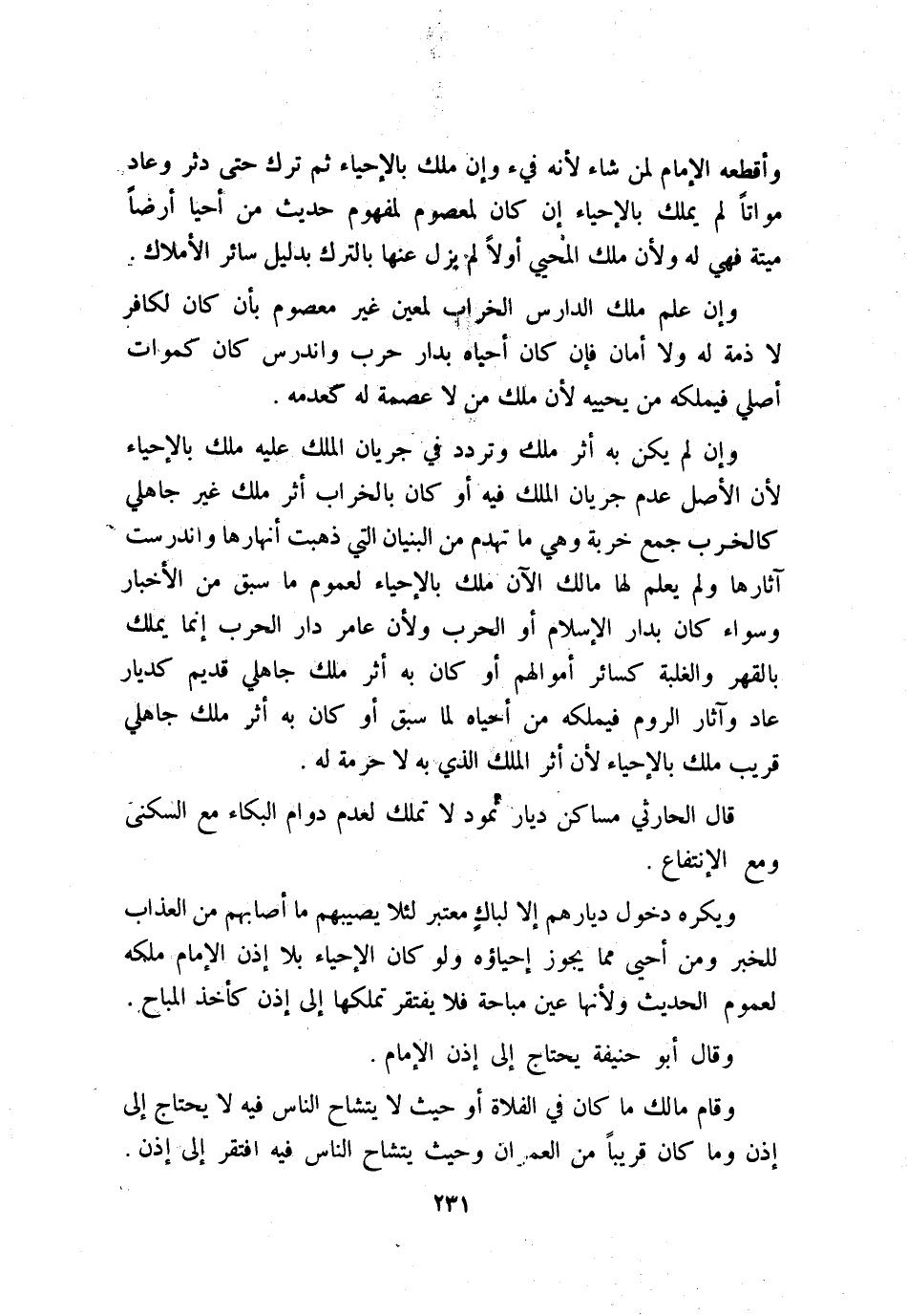 وقام مالك ما كان في الفلاة أو حيث لا يتشاح الناس فيه لا يحتاج إلى إذن وما كان قريبًا من العمران وحيث يتشاح الناس فيه افتقر إلى إذن.