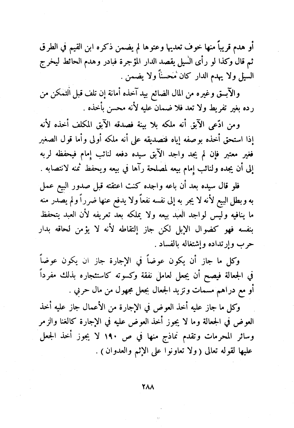 أو هدم قريبًا منها خوف تعديها وعتوها لم يضمن ذكرها ابن القيم في الطرق، ثم قال: وكذا لو رأى السيل يقصد الدار المؤجرة فبادر وهدم الحائط ليخرج السيل ولا يهدم الدار كان محسنًا ولا يضمن.