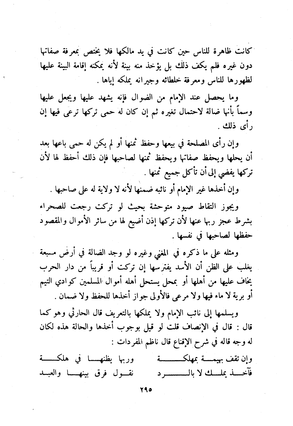 وإن رأى المصلحة في بيعها وحفظ ثمنها أو لم يكن له حمى باعها بعد أن يحلها ويحفظ صفاتها ويحفظ ثمنها لصاحبها، فإن ذلك أحفظ لها؛ لأن تركها يفضي إلى أن تأكل جميع ثمنها.
