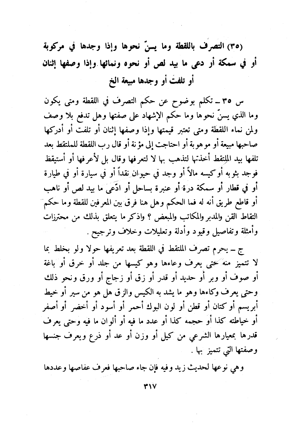 (35) التصرف باللقطة وما يسنّ نحوها وإذا وجدها في مركوبة أو في سمكة
