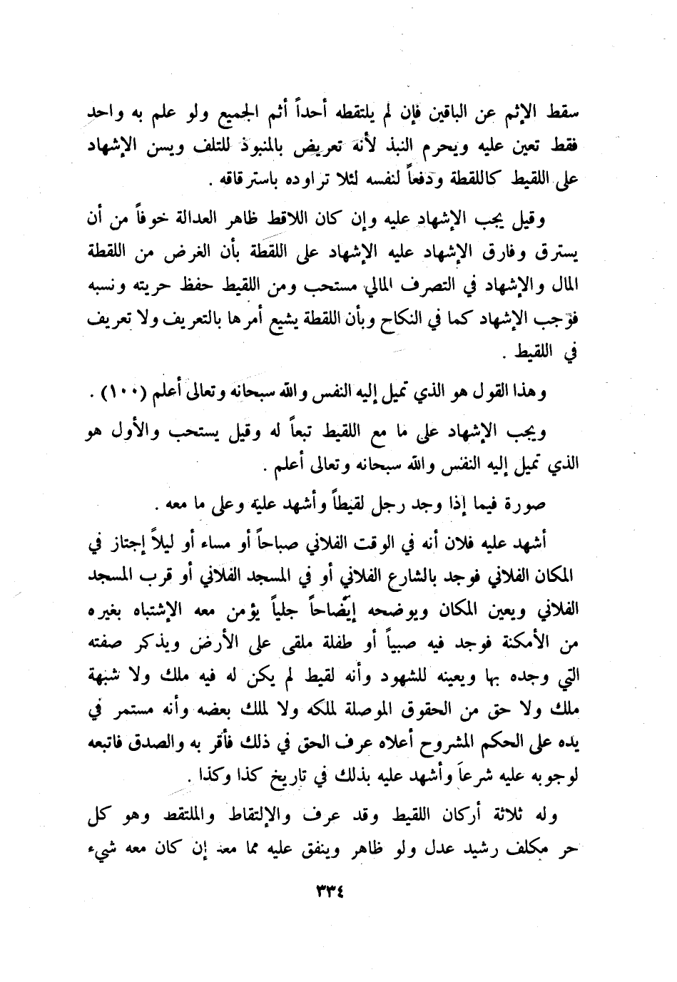 ويجب الإشهاد على ما مع اللقيط تبعًا له، وقيل: يستحب والأول هو الذي تميل إليه النفس، والله سبحانه وتعالى أعلم.