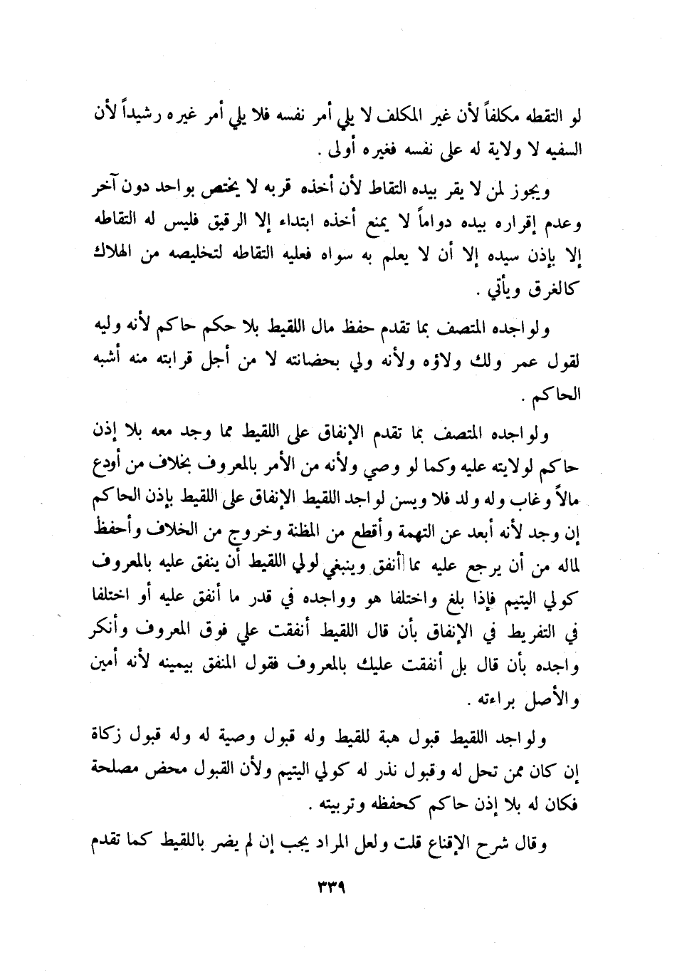 ولواجدة المتصف بما تقدم حفظ مال اللقيط بلا حكم حاكم؛ لأنه وليه لقول عمر ولك ولاؤه، ولأنه ولي بحضانته لا من أجل قرابته منه أشبه الحاكم.