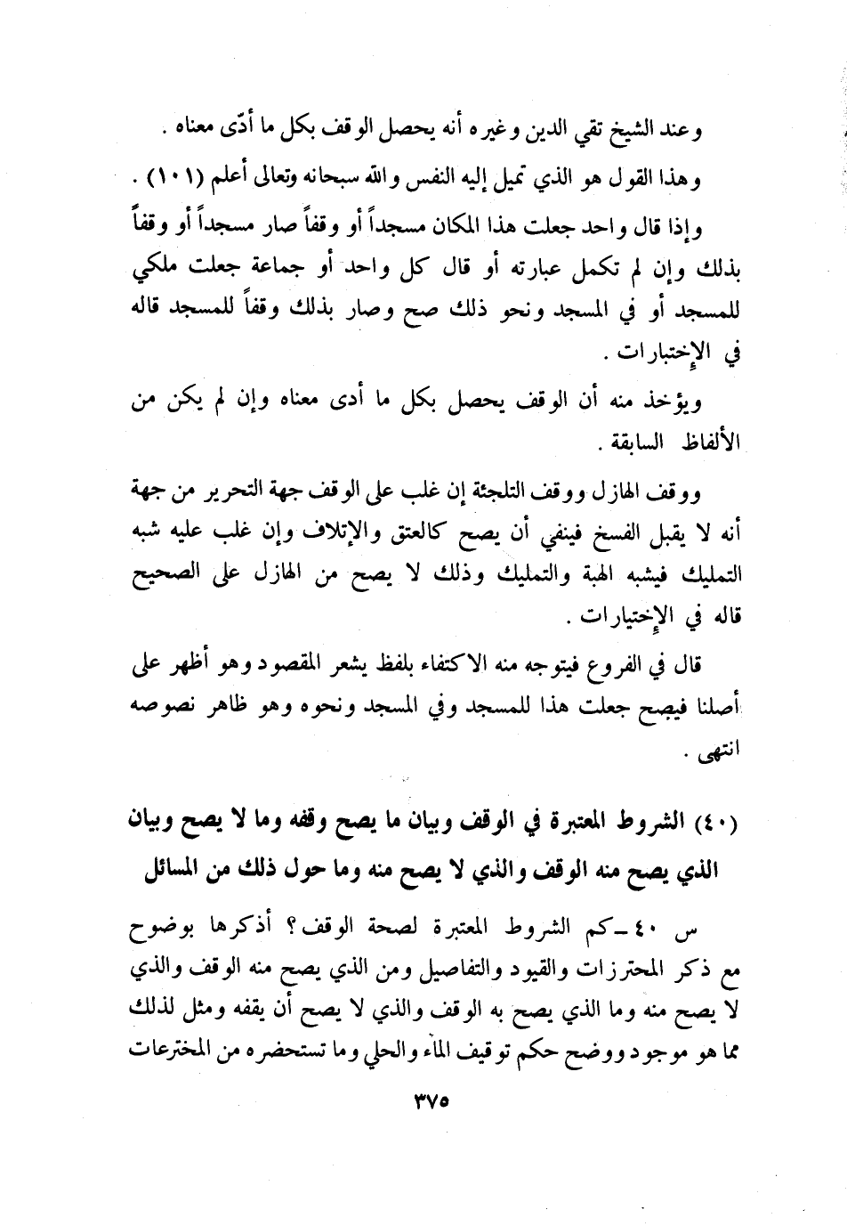(40) الشروط المعتبرة في الوقف وبيان ما يصح وقفه وما لا يصح وبيان الذي يصح منه الوقف والذي لا يصح منه، وما حول ذلك من المسائل