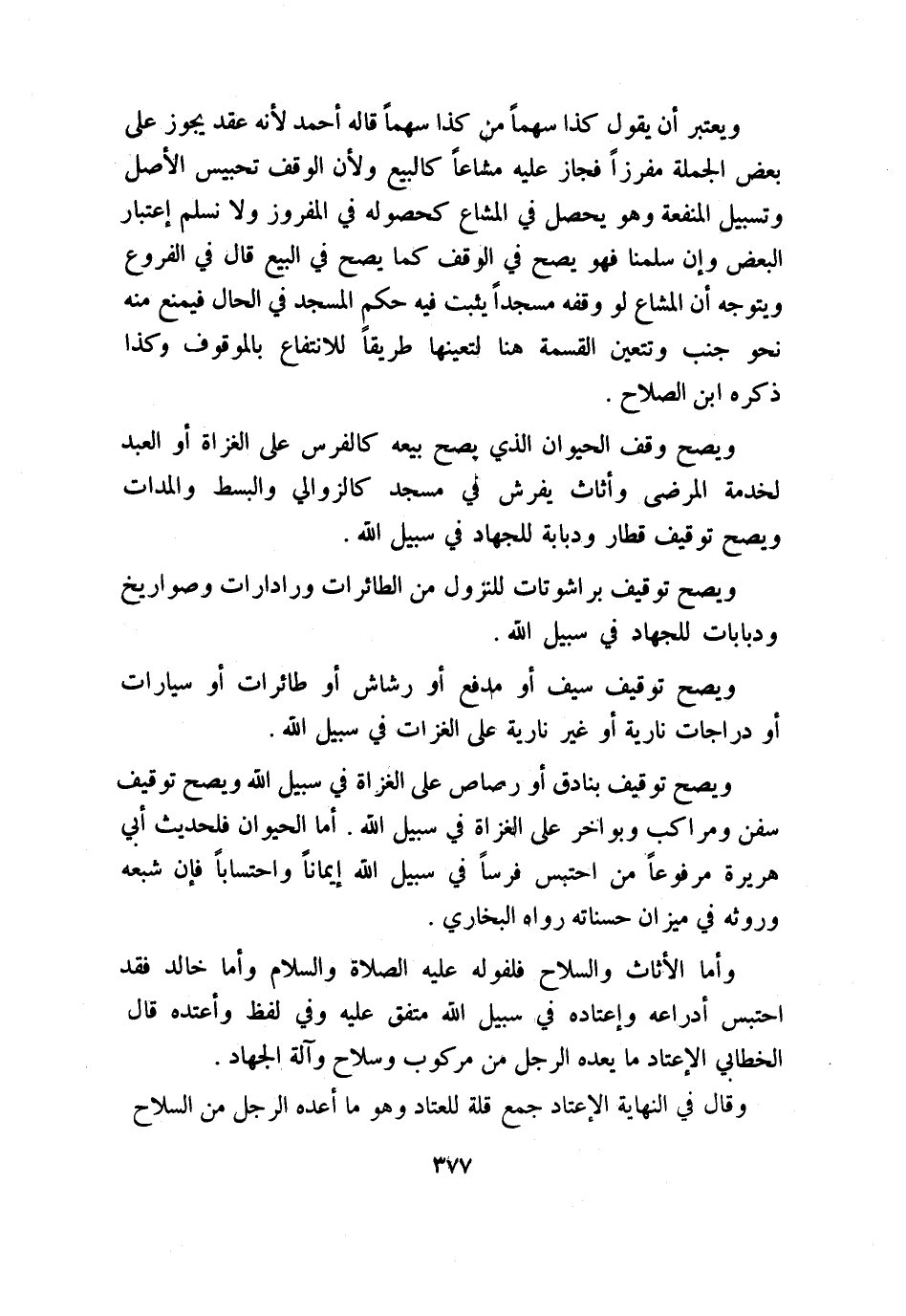 ويصح توقيف سيف أو مدفع أو رشاش أو طائرات أو سيارات أو دراجات نارية أو غير نارية على الغزات في سبيل الله.